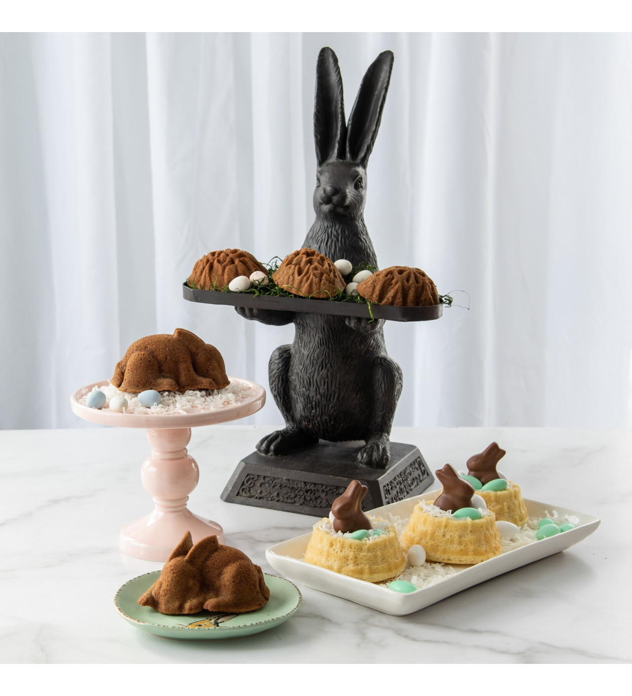 Nordic Ware trae un molde huevos de Pascua con el que puedes hacer obras de arte comestibles. Simplemente prepara la masa (varía los sabores a tu gusto), llena las seis cavidades del molde y espera algunos minutos hasta que la masa cubra cada rincón. Luego lleva al horno y deja que la magia del molde Nordic Ware haga el resto. Hecho de aluminio fundido con revestimiento antiadherente, este molde hornea de manera uniforme y dora los bizcochos por fuera.