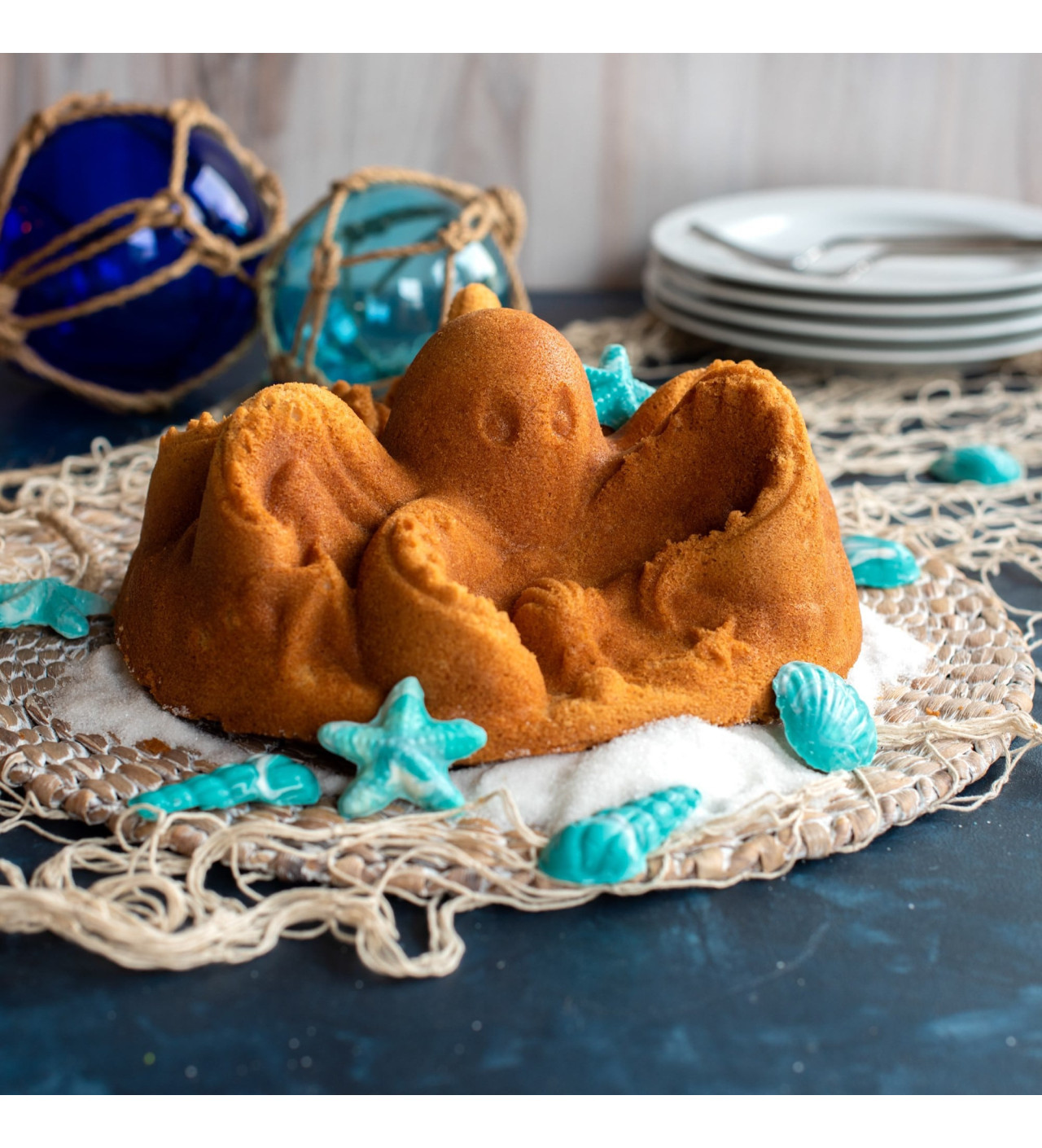 Ya sea para un cumpleaños o una fiesta temática de piratas, invoca monstruos marinos y conviértelos en un postre irresistible. También puedes disfrutar de una tarde en la playa con una merienda traída directamente del fondo del mar. El molde para bizcocho de Nordic Ware añade un toque de creatividad a cada comida.