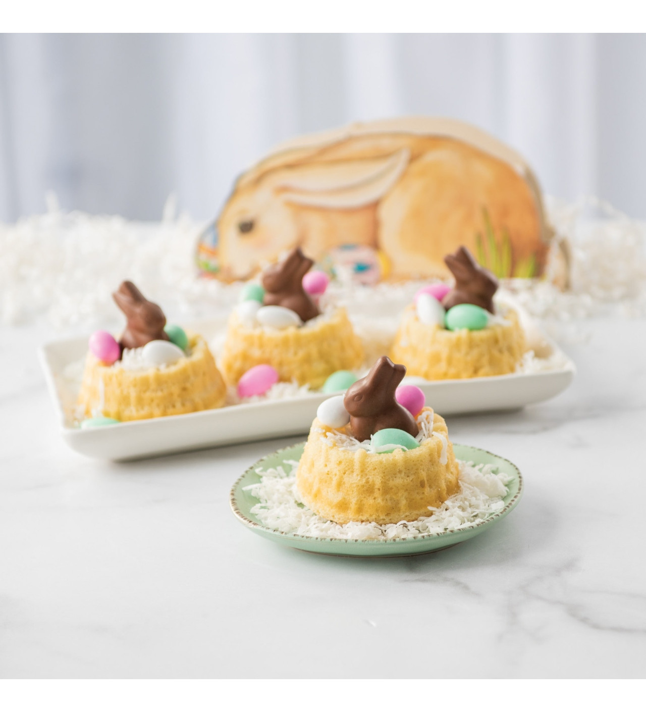 Prepara irresistibles postres de Pascua y llénalos con huevos de chocolate y otras decoraciones dulces. Nordic Ware te invita a hacer una búsqueda de huevos de Pascua aún más deliciosa con bizcochos en forma de cestas.