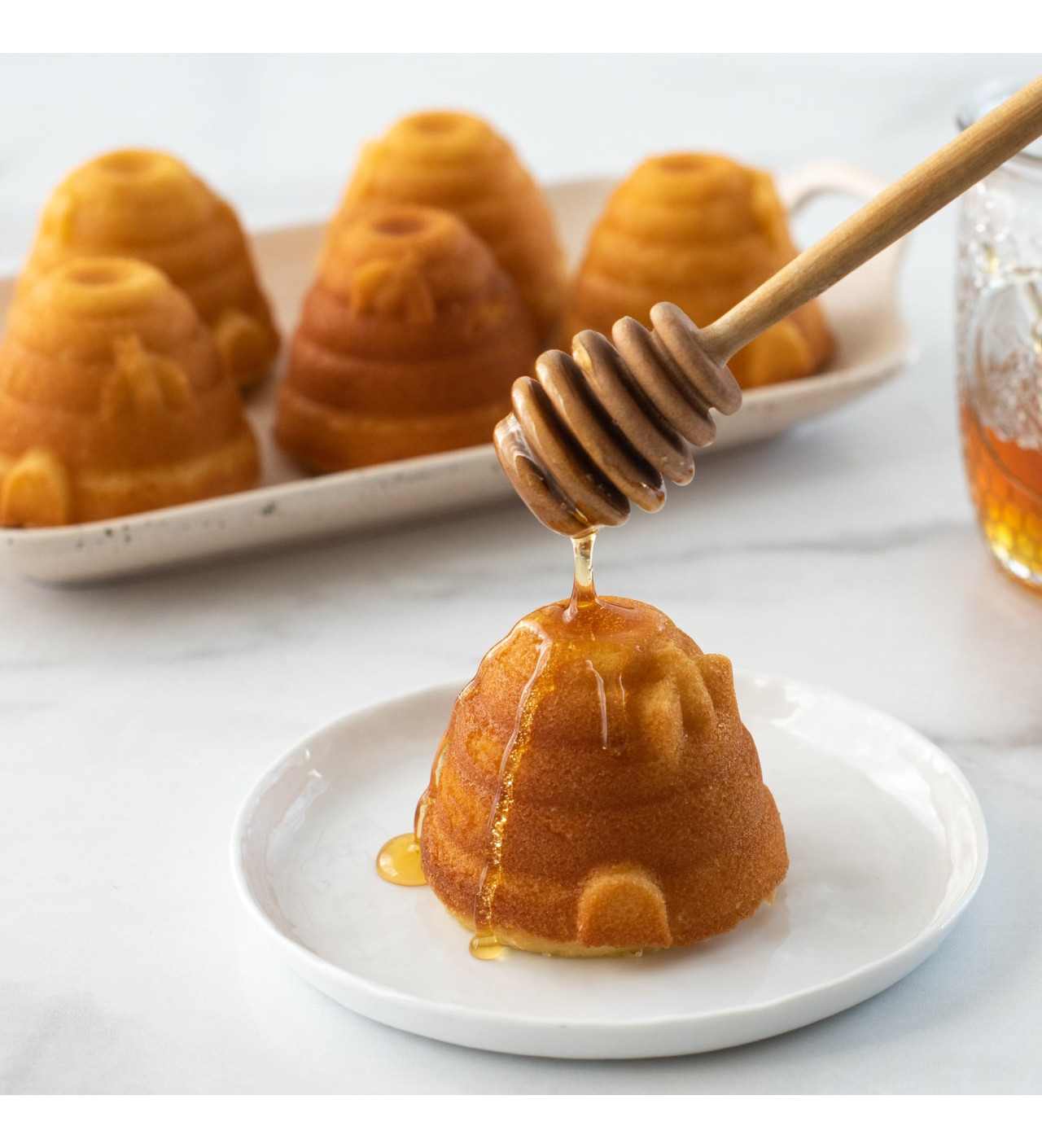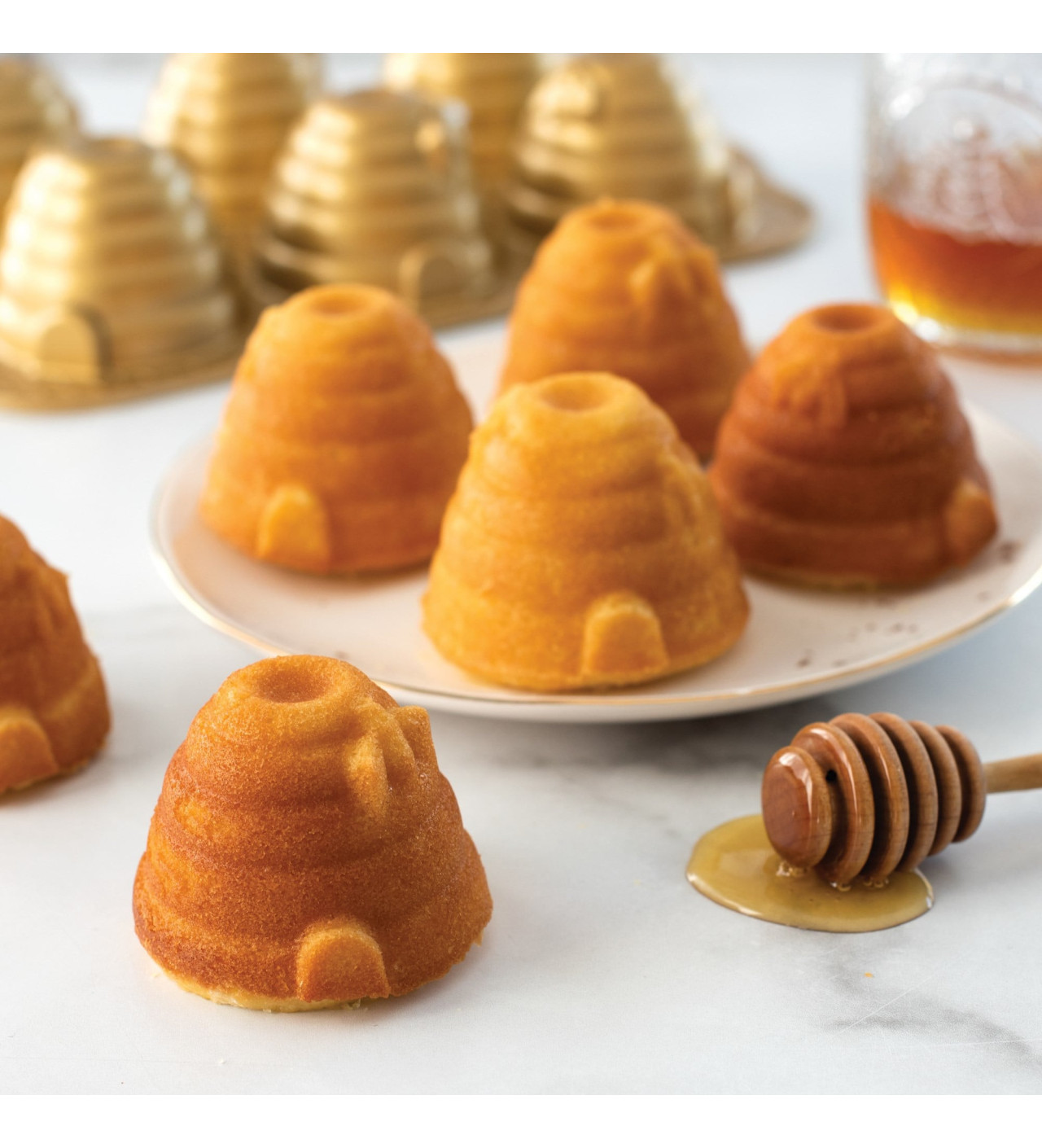 Lleva el amor por la miel a otro nivel y elabora bizcochos con aroma de miel en el molde beehives Nordic Ware, así, el estilo de tus postres únicos combinará con su sabor. En un picnic, un cumpleaños o simplemente para acompañar un té, el molde bizcochos colmenas es siempre una excelente idea de primavera.