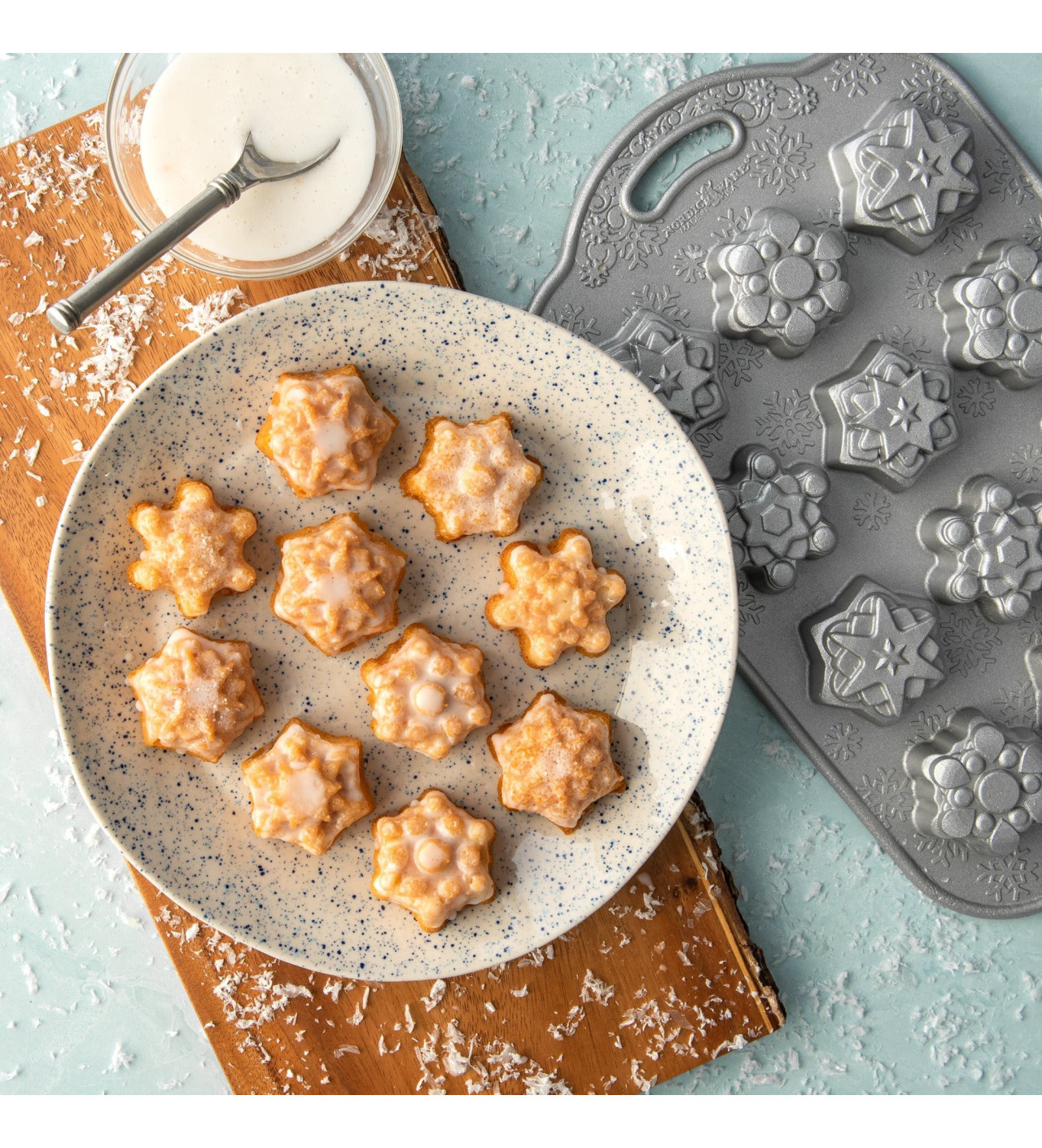 Toma el gusto de cocinar en familia y saborear tus postres, con los ojos como con el estómago, gracias al molde bizcochos copos de nieve Nordic Ware.