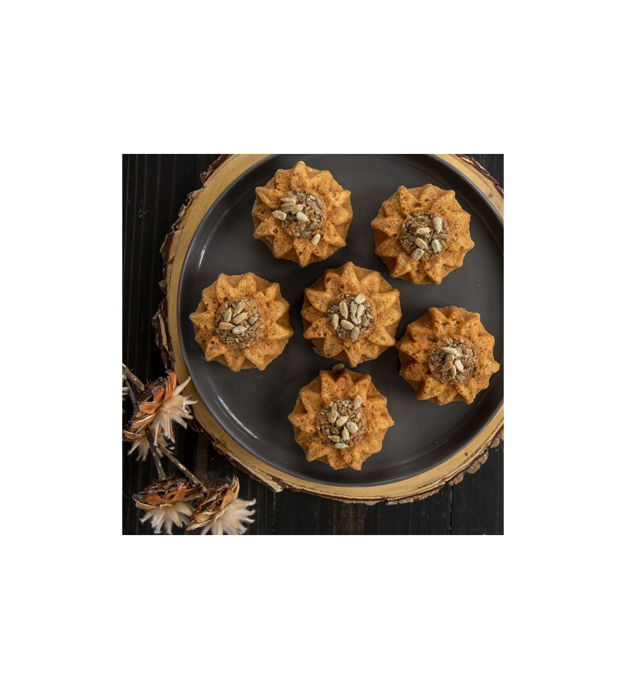 En los últimos días de verano, cuando los escasos rayos de sol calientan nuestros días y los colores otoñales pintan nuestro alrededor, los girasoles aún iluminan el paisaje justo antes de la cosecha. Durante este cambio de temporada, conserva un cálido recuerdo en forma de deliciosos bizcochos.