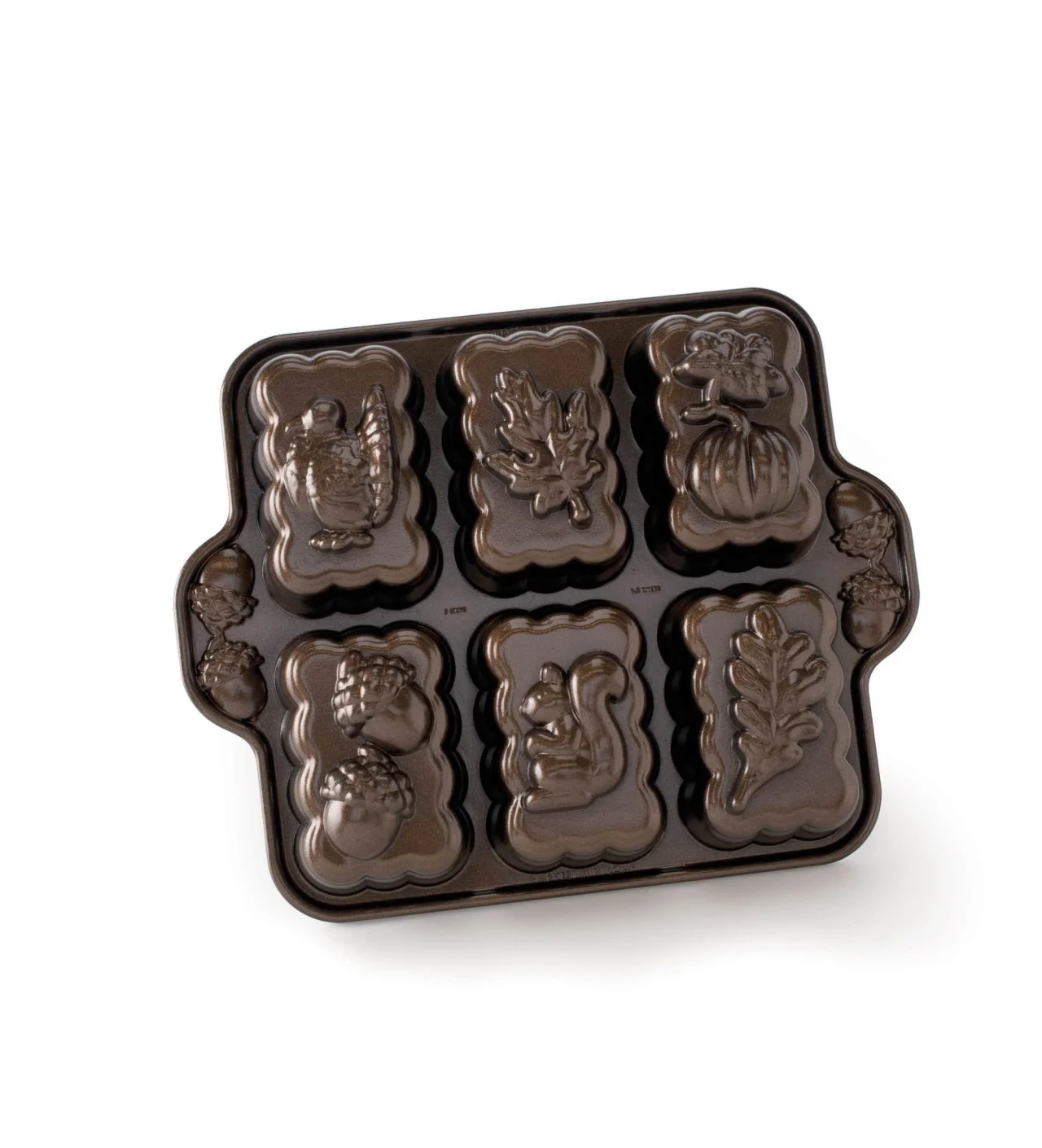Basándose en representaciones típicas del otoño, la marca de moldes para bizcochos creó este molde cake de alta calidad. El molde Nordic Ware cuenta con seis cavidades únicas en forma de pavo, dos hojas diferentes, calabaza, bellotas y ardilla. Estos diseños realzarán tus postres dándoles una forma que sorprenderá a tu familia.