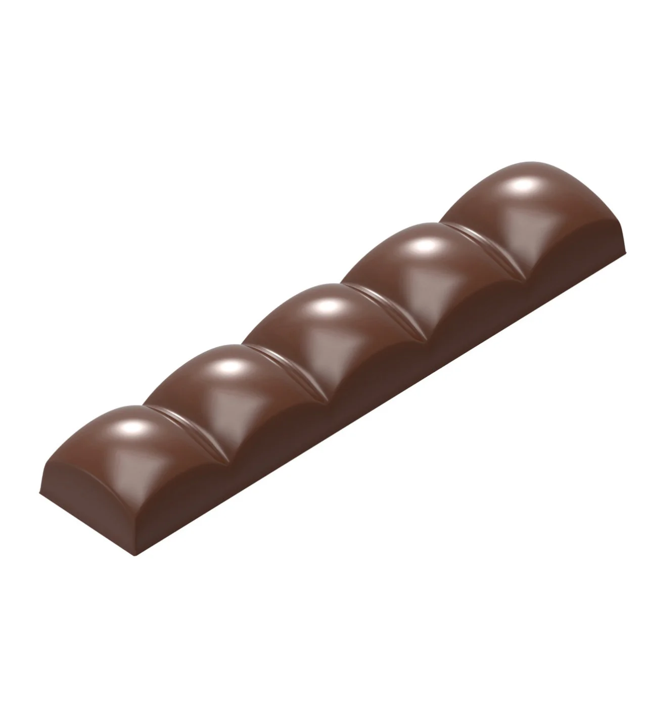 Prepara hasta ocho barras de 117,5 mm de largo, compuestas de cinco cuadrados abombados cada una y añádele un toque de dulzura al rellenar tus barras de chocolate: ¡nueces enteras, praliné, ganache de pistacho y todo lo que puedas imaginar! Por último, para un toque de fantasía de tus barras de chocolate ponle color al molde para chocolate antes de verter el chocolate.