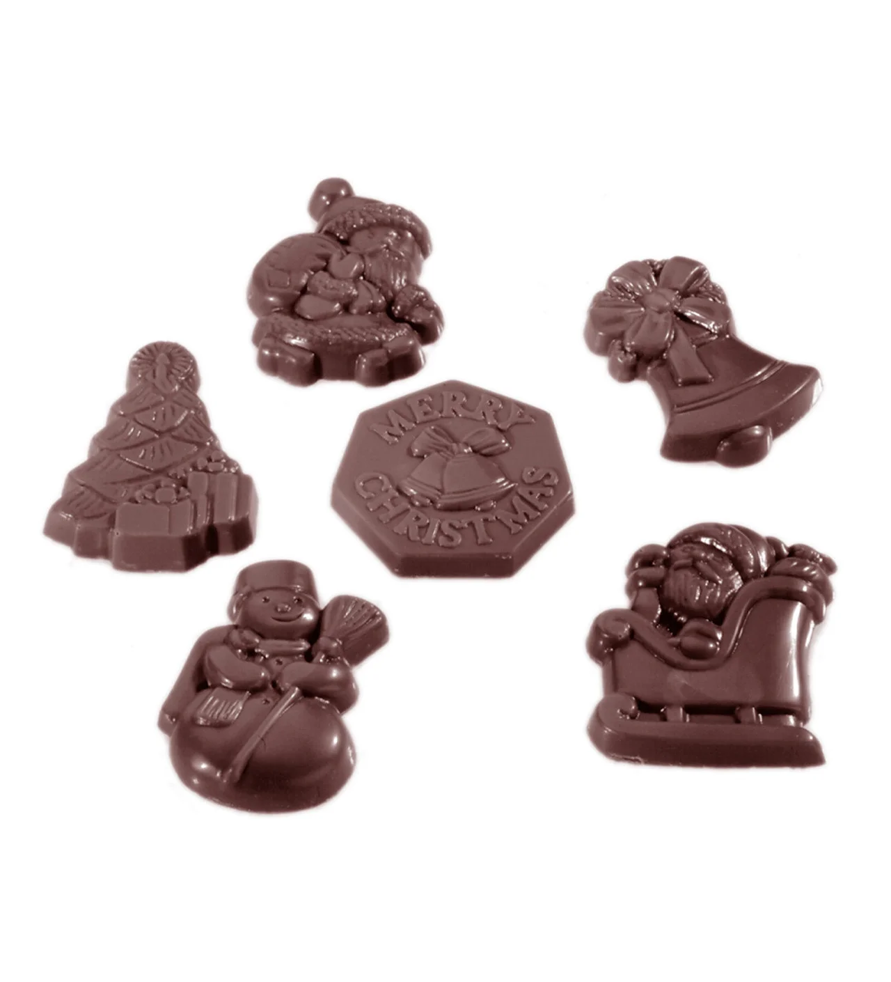 Gracias al molde chocolate Navidad de la marca Chocolate World, podrás moldear chocolates con formas emblemáticas de Navidad: trineo, campanita, muñeco de nieve, árbol de Navidad decorado, papá Noel y una medalla con la inscripción «Merry Christmas». Para elaborar tus figuras de chocolate de Navidad, el molde chocolate Navidad de la marca Chocolate World será el utensilio ideal. Solo te quedará elegir el chocolate de tu gusto, atemperarlo (todos los consejos están en la pestaña ficha técnica), llenar las cavidades y respetar el tiempo de endurecimiento del chocolate.