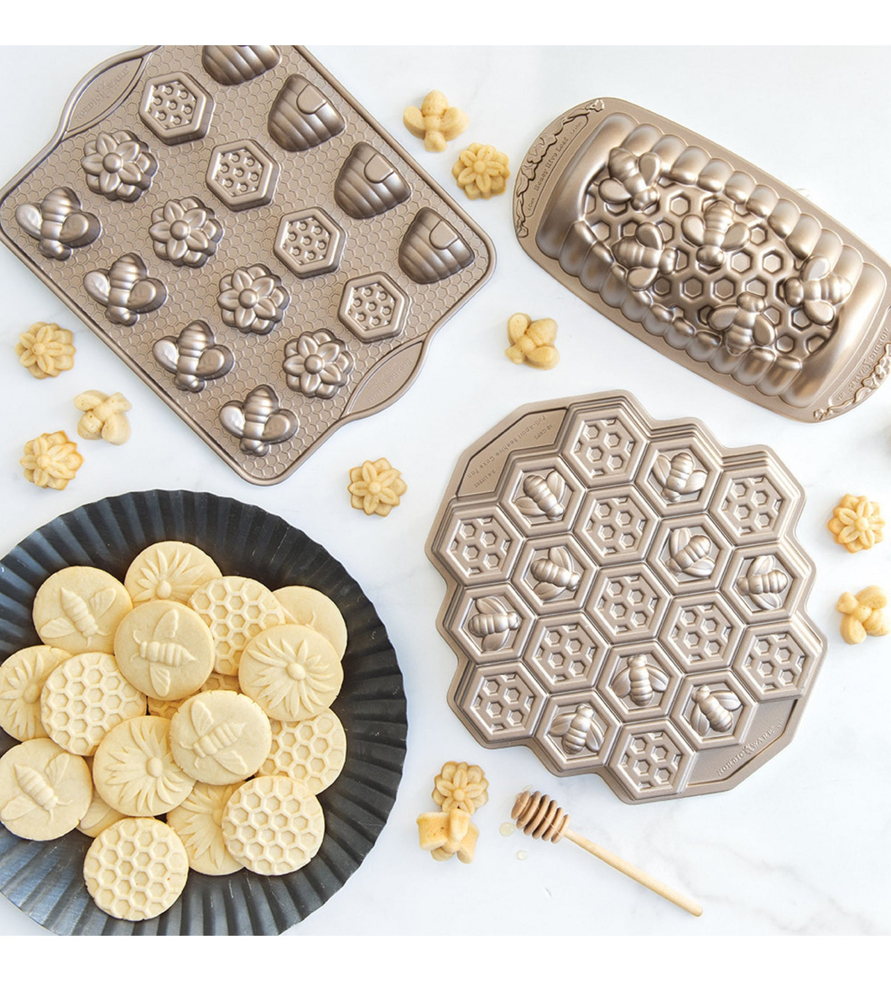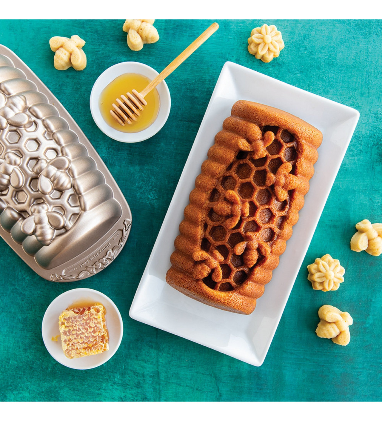 Si buscas bizcochos que dejarán a toda la familia pidiendo más, escoge el molde plum cake abejas de Nordic Ware.