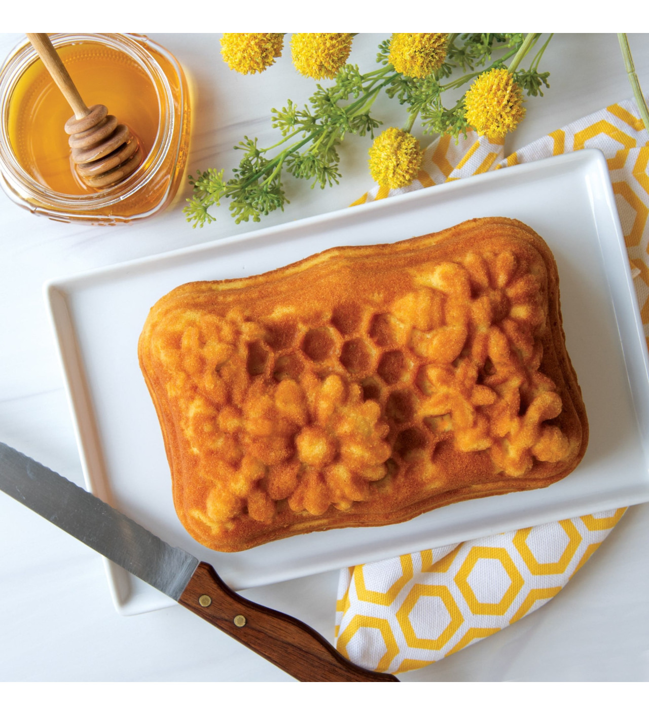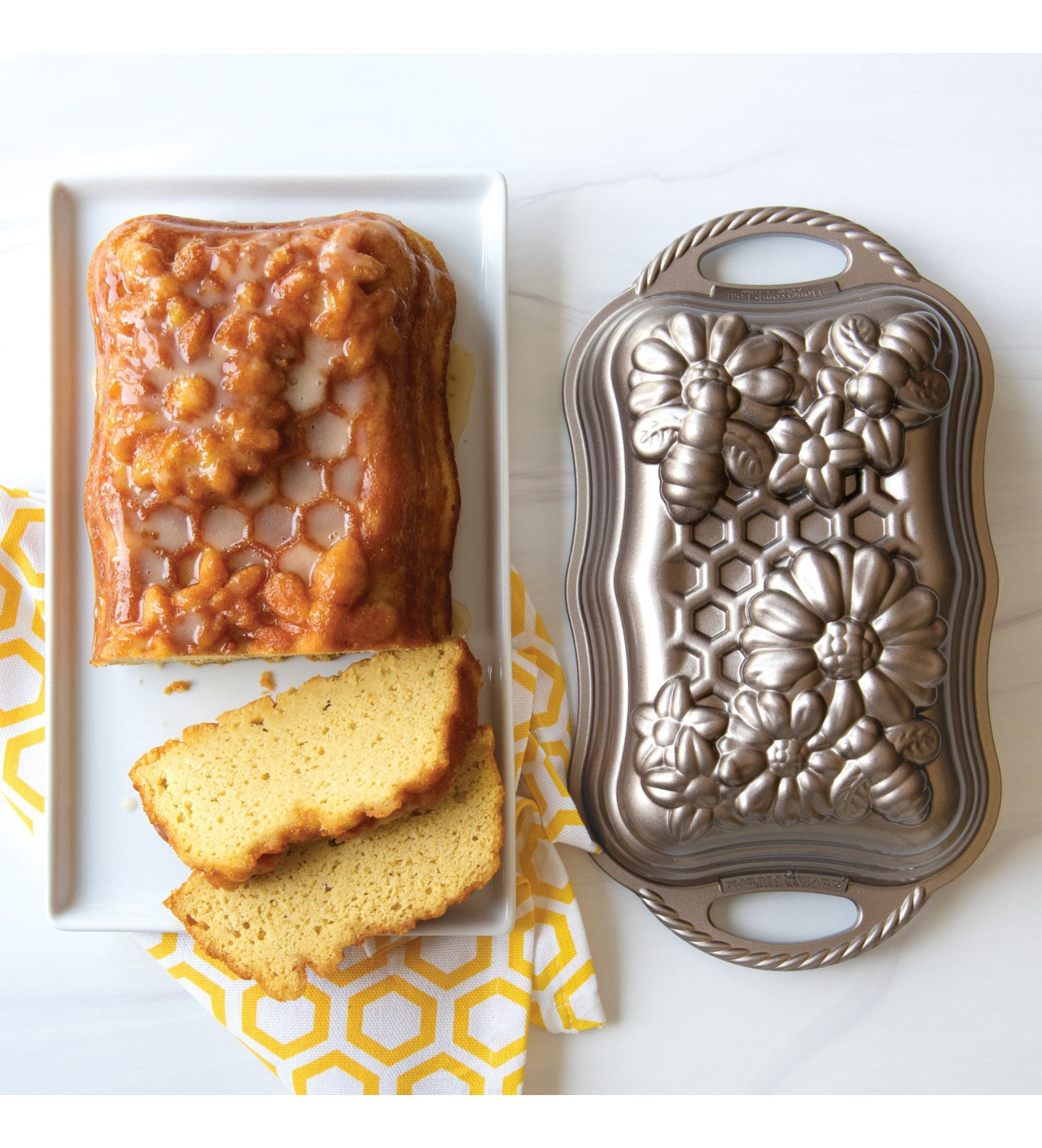 En este molde plum cake, encontrarás adorables abejas esculpidas que recogen el néctar de las flores y los alvéolos de un panal lleno de miel. Nordic Ware trae para ti un molde de cake con un diseño tan detallado que dejará sorprendida a tu familia.