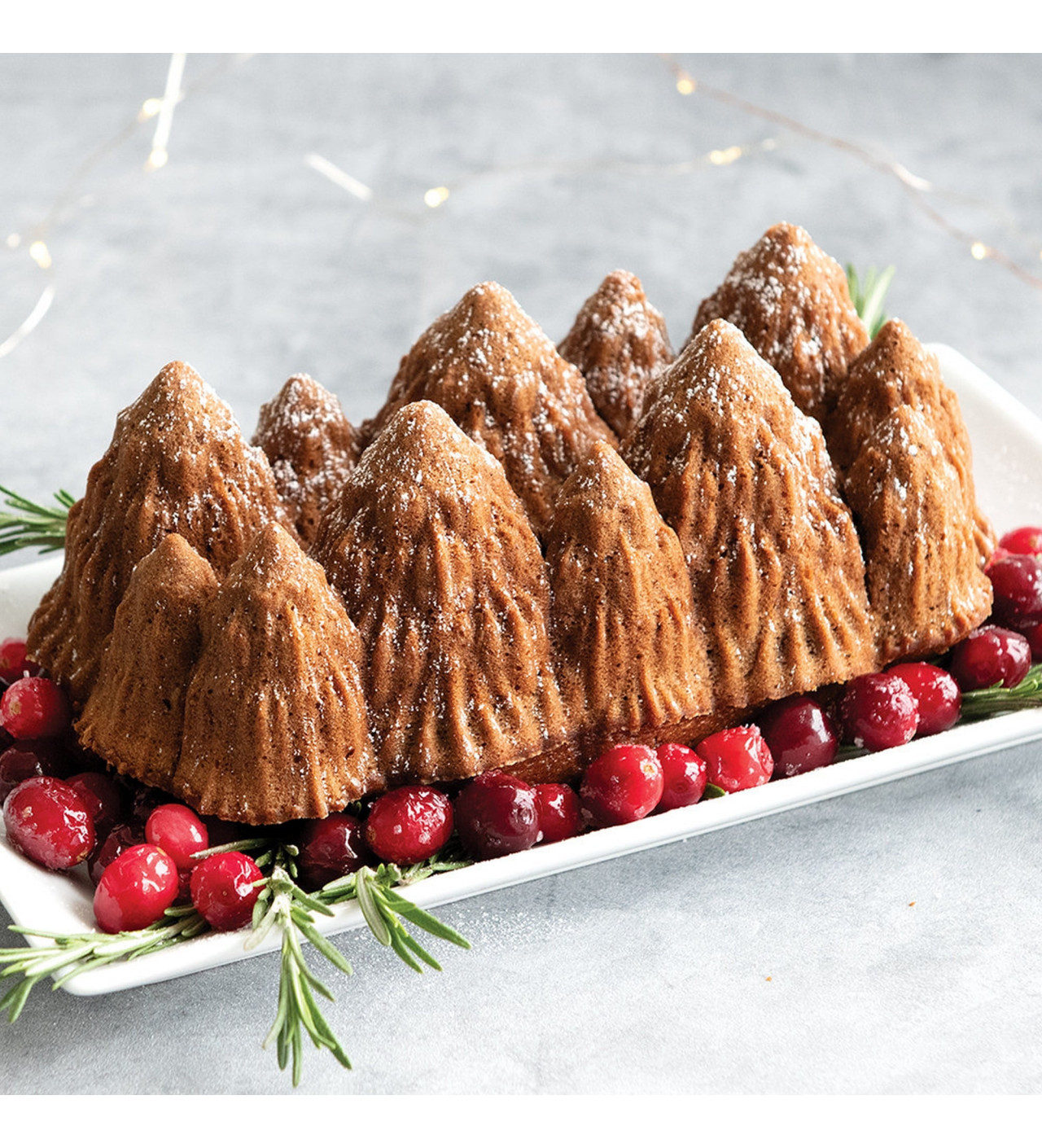Los bizcochos con el molde Nordic Ware tienen detalles realistas inigualables. Para el toque final, simplemente espolvorea azúcar glas o glaseado sobre los bizcochos para que las puntas repliquen los pinares en las montañas. No importa si llevas años o acabas de adentrarte en el mundo de la repostería, conseguirás un bizcocho de gran calidad que podrás devorar con tus ojos y con tu estómago.