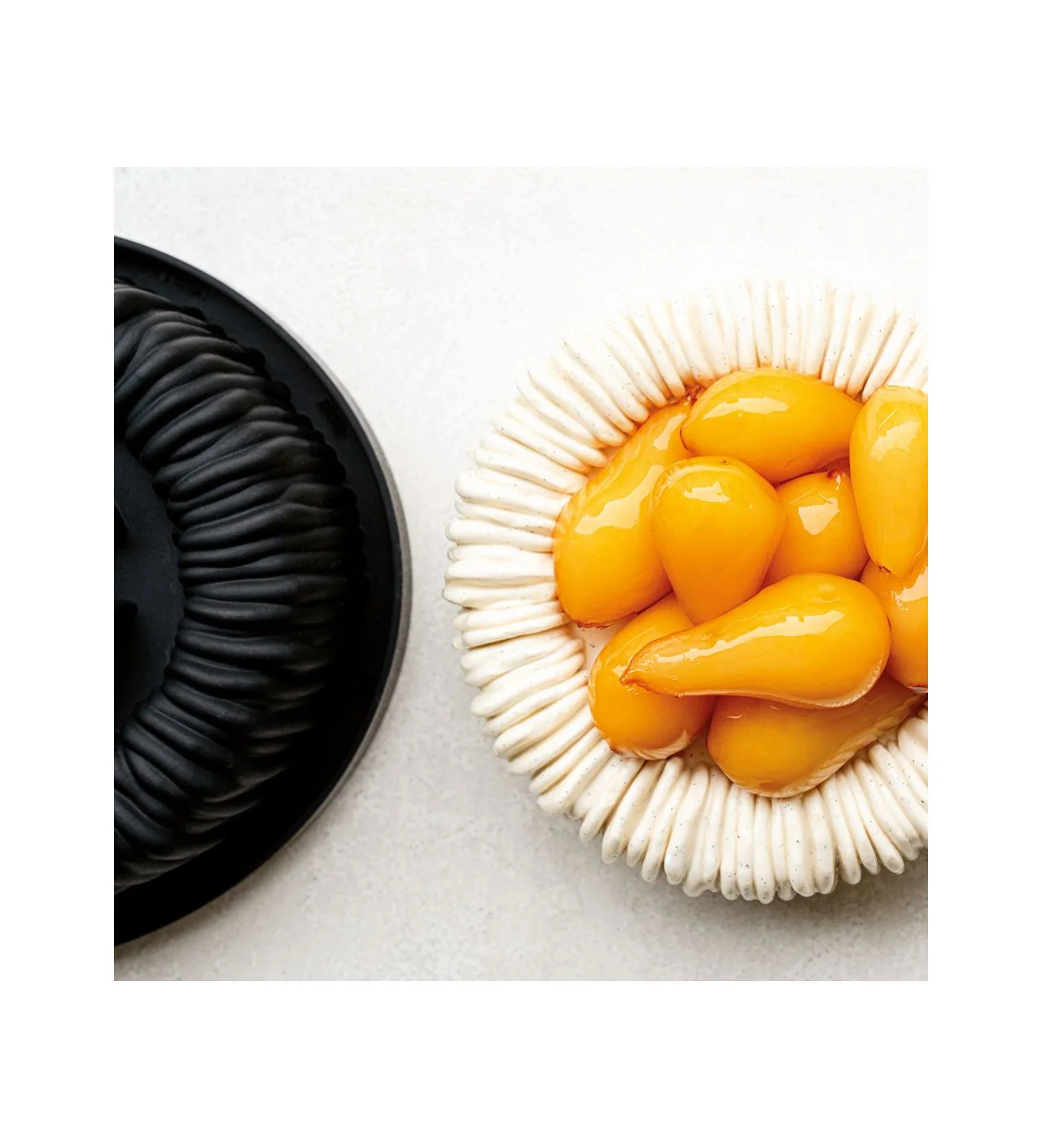 Este molde silicona redondo está hecho de silicona platino y cuenta con detalles impresionantes con los que podrás hacer un entremets con una decoración con una ilusión óptica muy bien hecha. Así que podrás reinventar una tarta carlota digna de grandes pasteleros como Cédric Grolet quien ha diseñado este molde de silicona junto con la marca Pavoni.