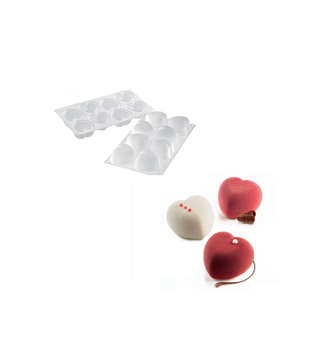 Molde silicona corazón abombado (x8) 6,35 x 6,5 cm 100ml SilikoMart Professional