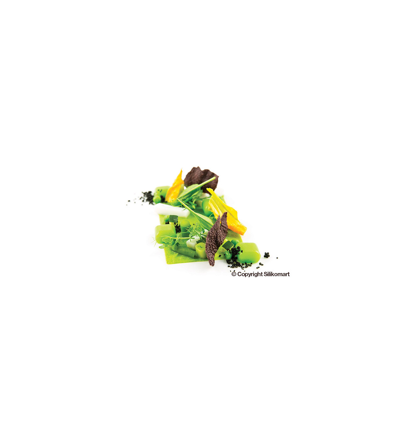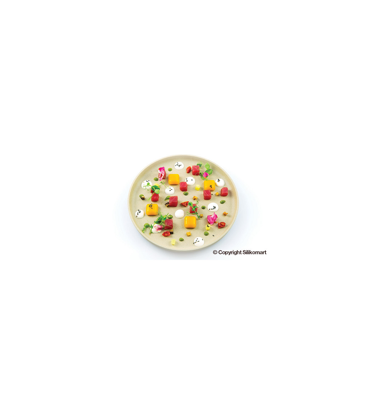 ¿Deseas modernizar y sofisticar tus ensaladas compuestas? ¿preparar un bufet? ¿Presentar una cena de picoteo? Realiza unos suculentos pequeños bocados dulces o salados gracias al molde silicona de la marca SilikoMart Professional. Está hecho de silicona, el molde de silicona para tarta se utiliza por profesionales de la repostería y su material le da la ventaja de ser muy fácil de desmoldar. Además, el molde silicona cuadrados tiene una forma original ya que las 35 cavidades son abombadas. Así que tus pasteles pequeños, rellenos y decoraciones tendrán una forma única con un volumen refinado. Estos pequeños bocados se pueden servir fríos o calientes según tu gusto. El molde SilikoMart tiene la ventaja de adaptarse al horno, al microondas y al frigorífico ya que resiste a temperaturas extremas.