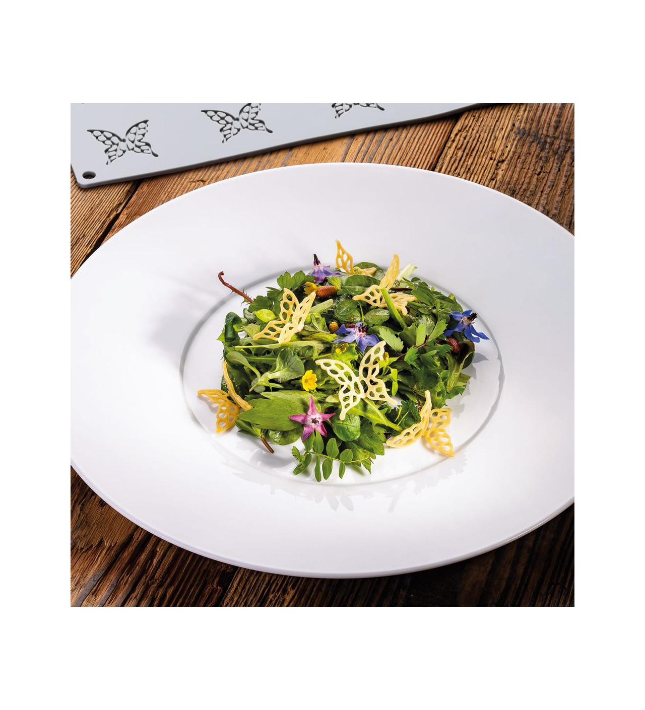 Para decoraciones comestibles tan finas como sabrosas, deja volar tu imaginación y utiliza el molde Pavoni. Ya sean simplemente de chocolate, de coulis de frutas, de miel o de crema, tus mariposas pequeñas le darán un toque deliciosos y delicado a tus platos.