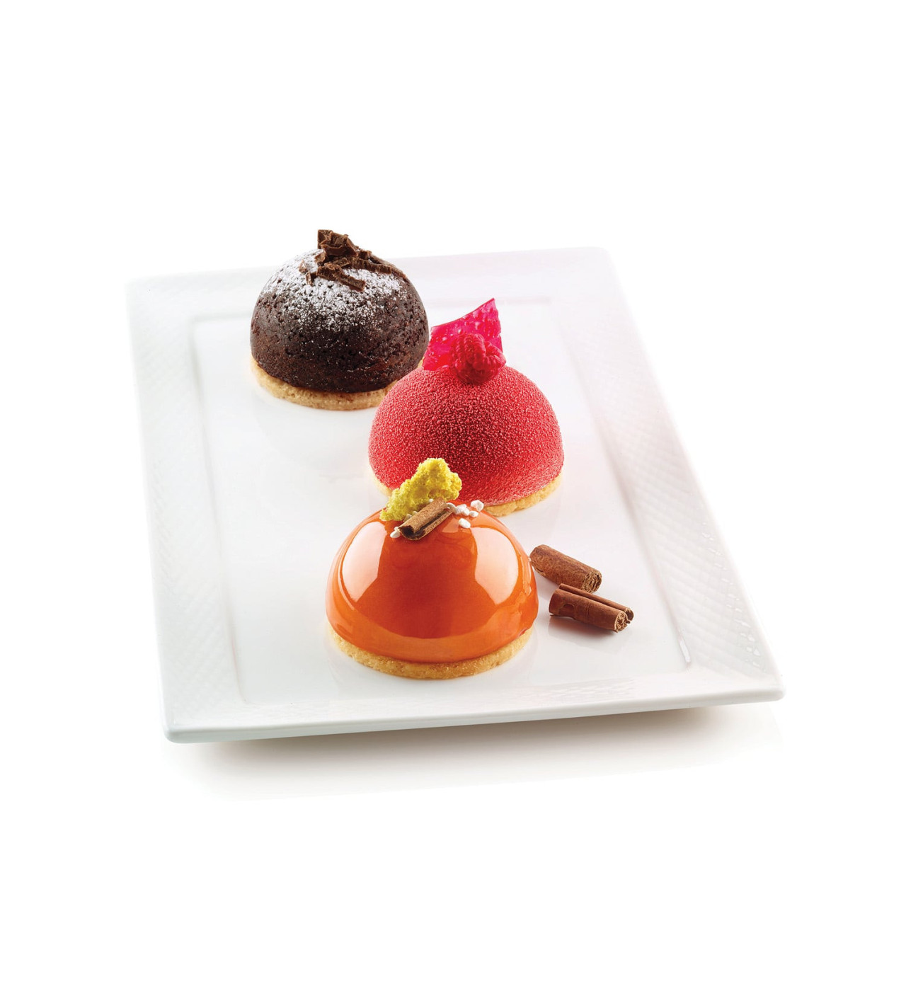Moldea domos de helado con una forma perfecta y hornea bizcochos cubiertos de chocolate extremadamente suaves utilizando el molde silicona SilikoMart. Con sus 6 cavidades en forma de semiesferas, este molde de silicona es la garantía de obtener postres elegantes que se conservan bien. Tanto en el horno como en el congelador, todas tus preparaciones tendrán un aspecto profesional y delicioso. El molde silicona semiesfera también te garantiza un desmoldado sin esfuerzo ni dificultades: la silicona platino es antiadherente además de ser apta para el contacto con alimentos.