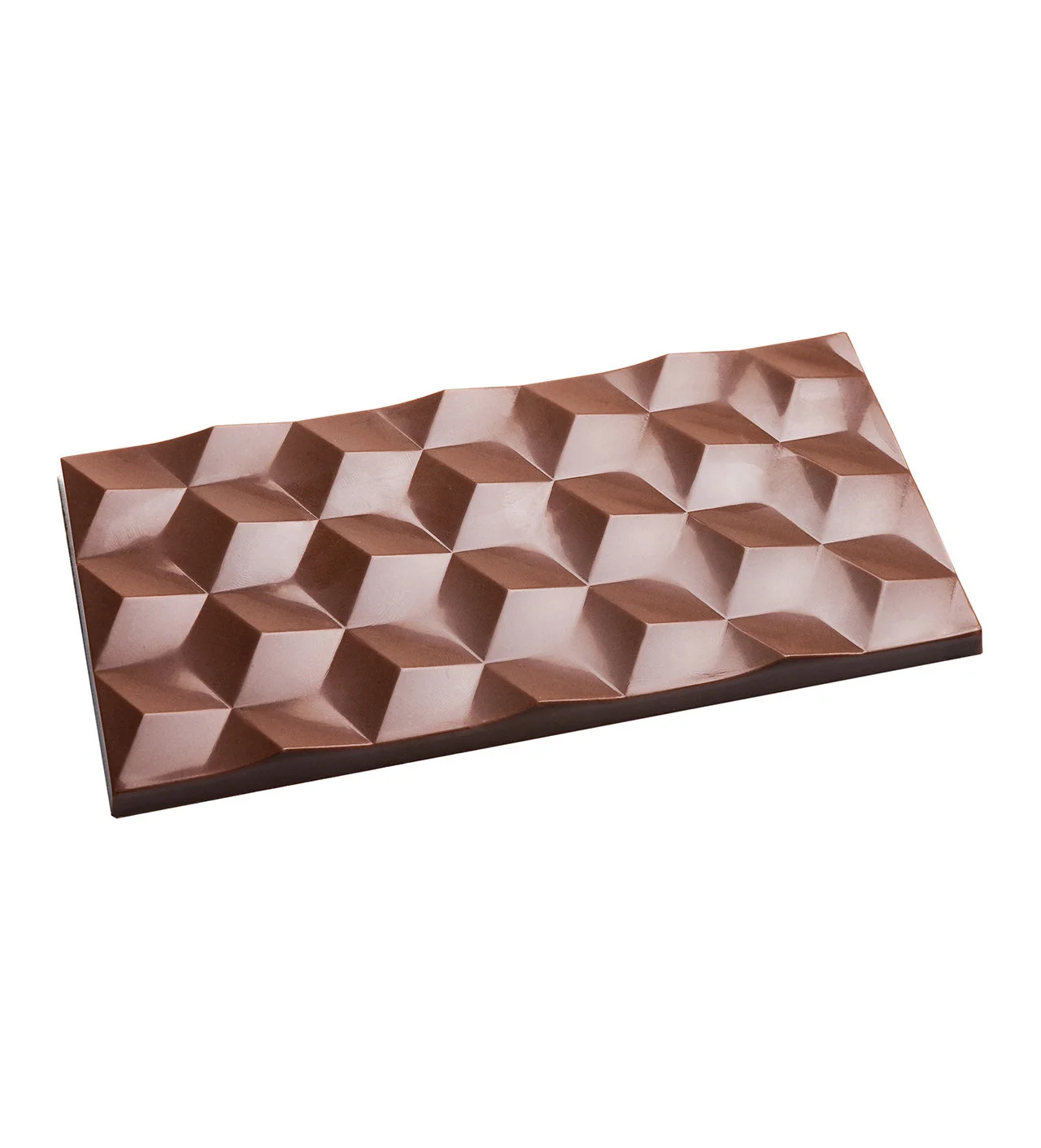 Elabora chocolates con hermosos motivos geométricos con el molde tableta chocolate facetado de la marca Chocolate Word. Está compuesto de policarbonato, el molde para chocolate es de calidad profesional y con él podrás hacer moldeados de chocolate con un acabado brillante. Las tres cavidades del molde policarbonato también son fáciles de desmoldar para simplificar la preparación tanto de aficionados como de profesionales.