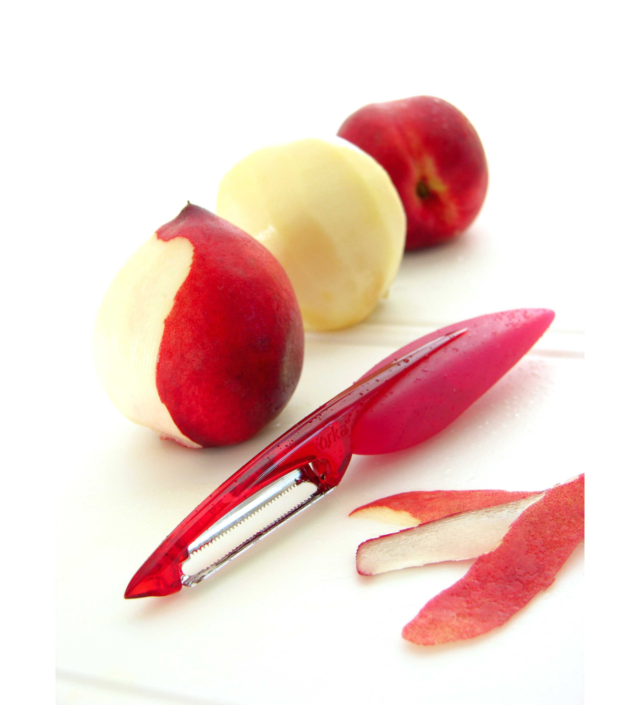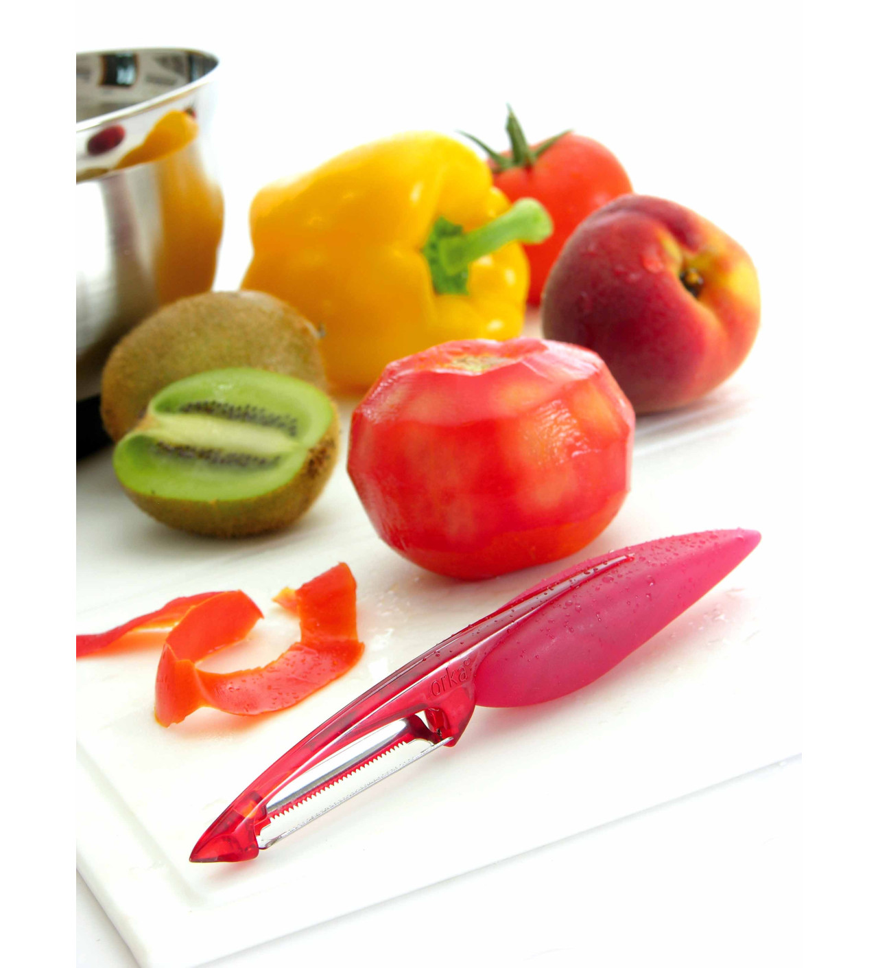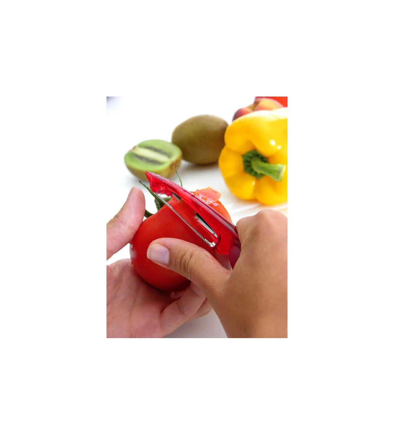 Este pelador de tomates Elios es un pelador de verduras y frutas ideal para pelar alimentos de piel fina y delicada como tomates, kiwis, melocotones o pimientos. La hoja serrada pendular del pelador multifuncional de Mastrad te permitirá pelar verduras en un abrir y cerrar de ojos.