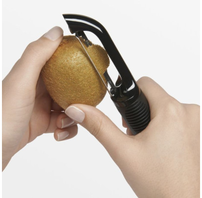 El agarre del pelador multifuncional Kyocera es muy cómodo: este pelador de patatas horizontal es apto tanto para diestros como para zurdos.