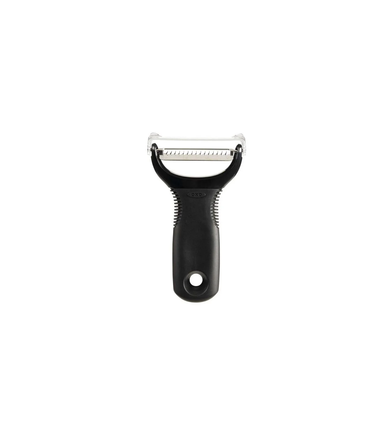La hoja de este pelador de verduras Oxo te permite hacer julianas de verduras y frutas con facilidad y sin esfuerzo.