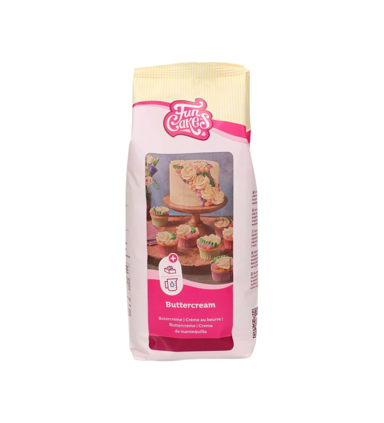 ¿Quieres saber el secreto de la mejor receta de buttercream? El preparado para crema de mantequilla de Funcakes. Un poco de mantequilla, un poco de agua, unas cucharadas de preparado y obtendrás una buttercream lista para usar en muffins, rellenar cupcakes o cubrir una tarta layer cake para que el fondant se adhiera.