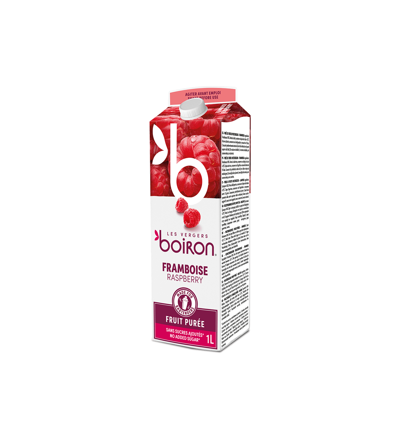 La frambuesa, un fruto rojo de color tentador y sabor ácido, se utiliza en todo tipo de platos y pastelería. Boiron te ofrece un concentrado de esta fruta veraniega en su puré de frutas en botella. Además de ser delicioso y 100% natural, este puré de frambuesa se presenta en un envase muy práctico. El cartón de 1 L es resellable a voluntad y es fácil de manejar.