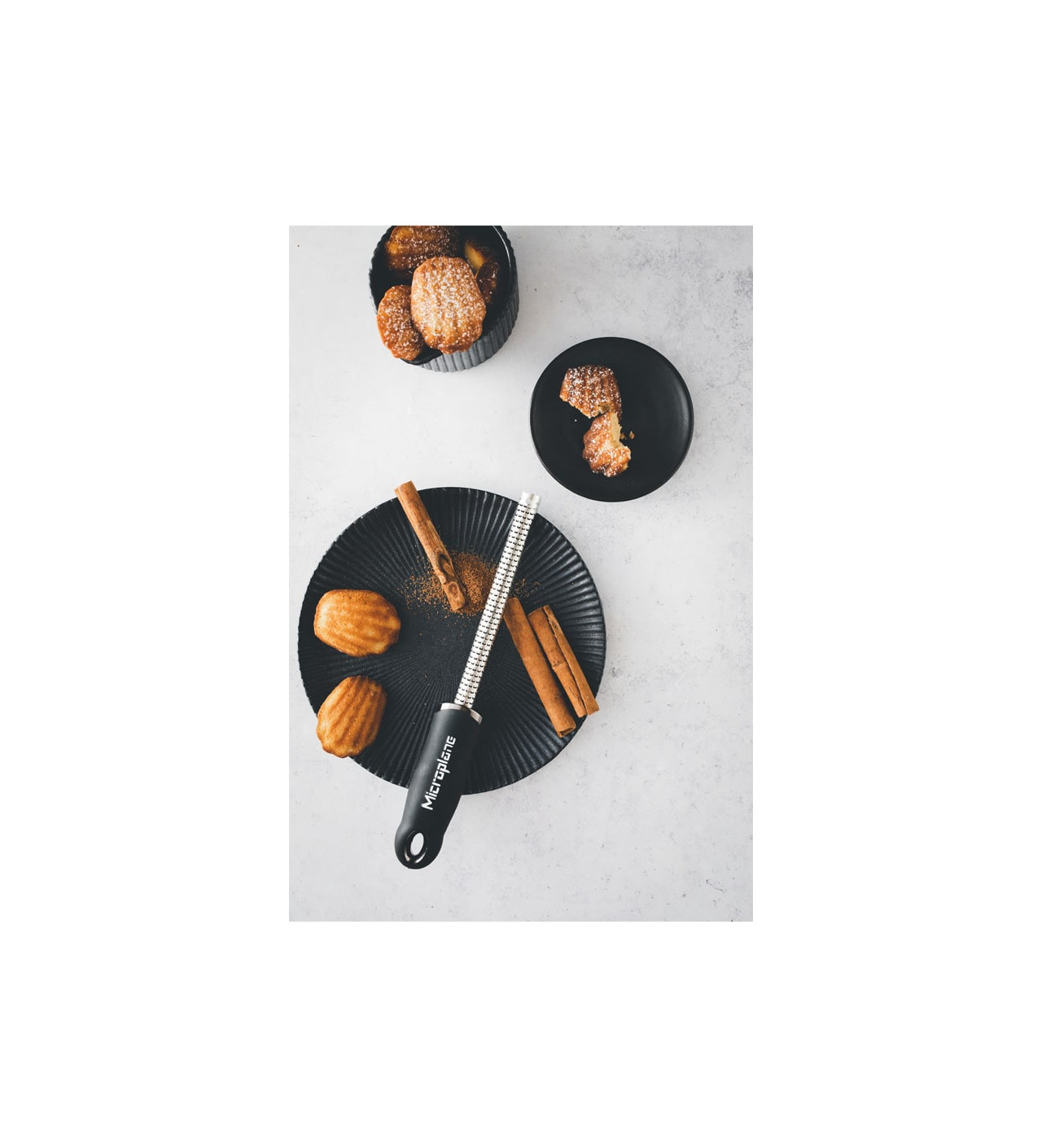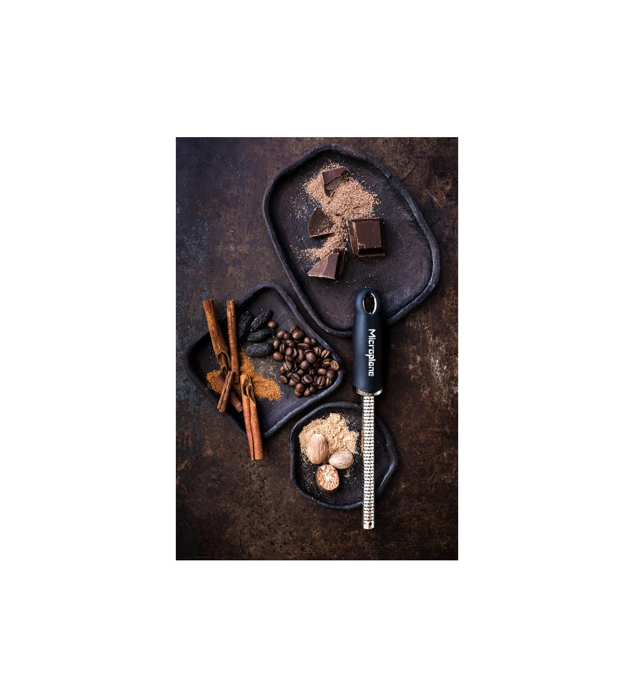 Imagina la deliciosa sensación de espolvorear canela directamente sobre tus crumble de manzana, de rellenar tus crepes con chocolate o de aromatizar tus tartas dulces con haba tonka recién rallada. Gracias al rallador Microplane, especialmente diseñado para rallar especias, podrás disfrutar de dar rienda suelta a tus antojos culinarios para crear platos y postres llenos de sabor.