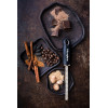 Estos aromas se liberan gracias a la hoja curva de este rallador de especias, fabricada en acero inoxidable de alta calidad. Este material le confiere una resistencia y durabilidad excepcionales, acompañándote en la cocina durante muchos años. Sus dientes finos semicirculares permiten rallar especias pequeñas con gran facilidad. Gracias a su precisión y delicadeza, este rallador transforma cualquier ingrediente en un polvo fino y ligero.