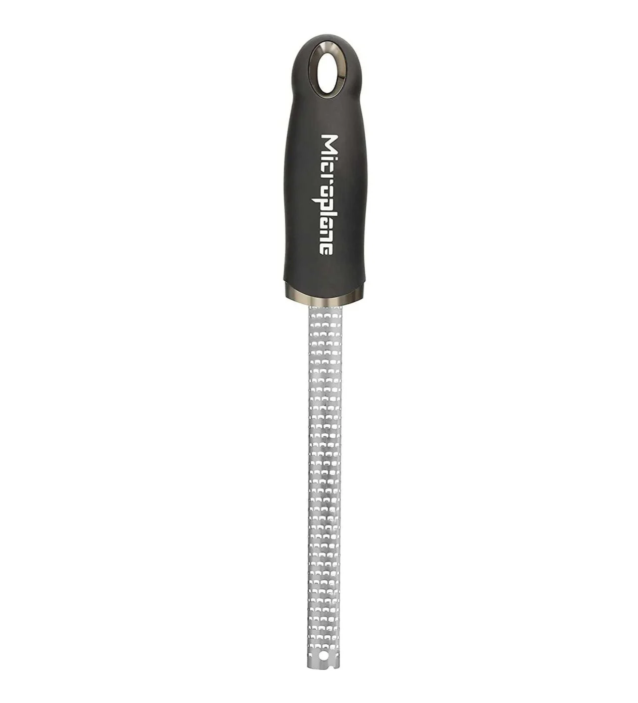 El rallador Microplane para especias también destaca por su mango ergonómico, que mejora significativamente la experiencia de uso. Al adaptarse perfectamente a la forma de tu mano, facilita el agarre y garantiza un resultado impecable sin esfuerzo.