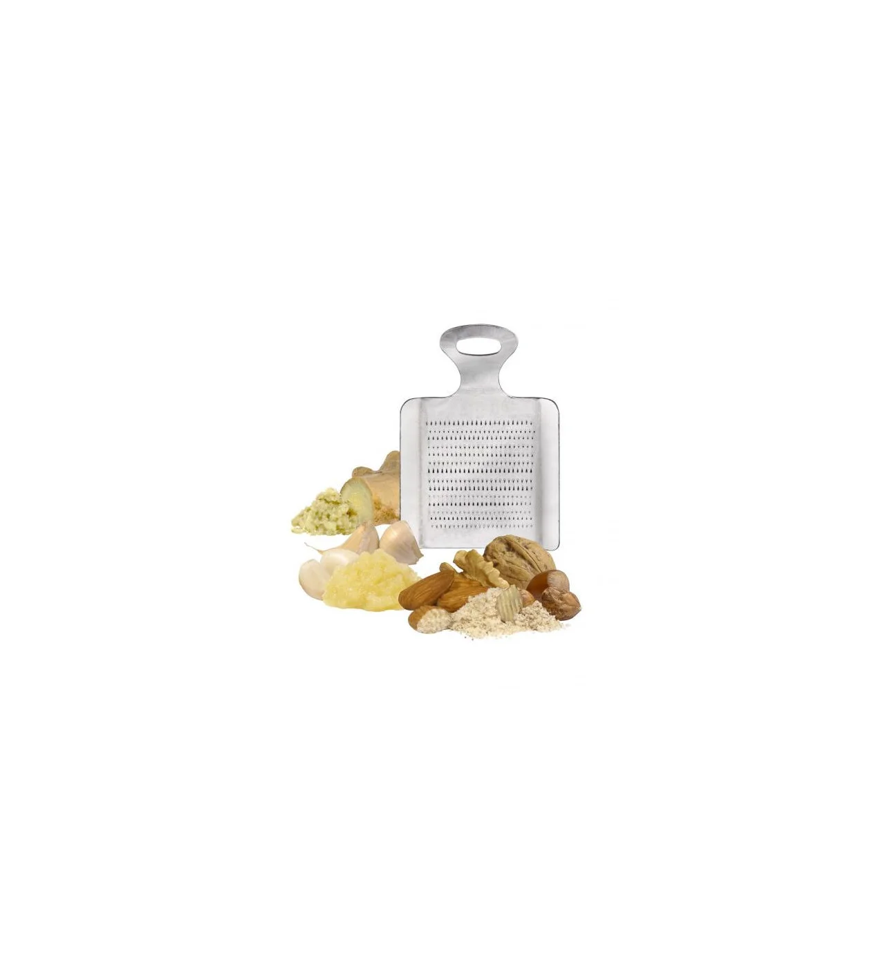 Fabricado por la marca francesa La Bonne Graine de Louis Tellier, este pequeño rallador de acero inoxidable, con sus múltiples dientes afilados, te permitirá hacer polvo de especias y frutos secos como las nueces, y de rizomas y bulbos carnosos como el wasabi, el jengibre o el ajo.