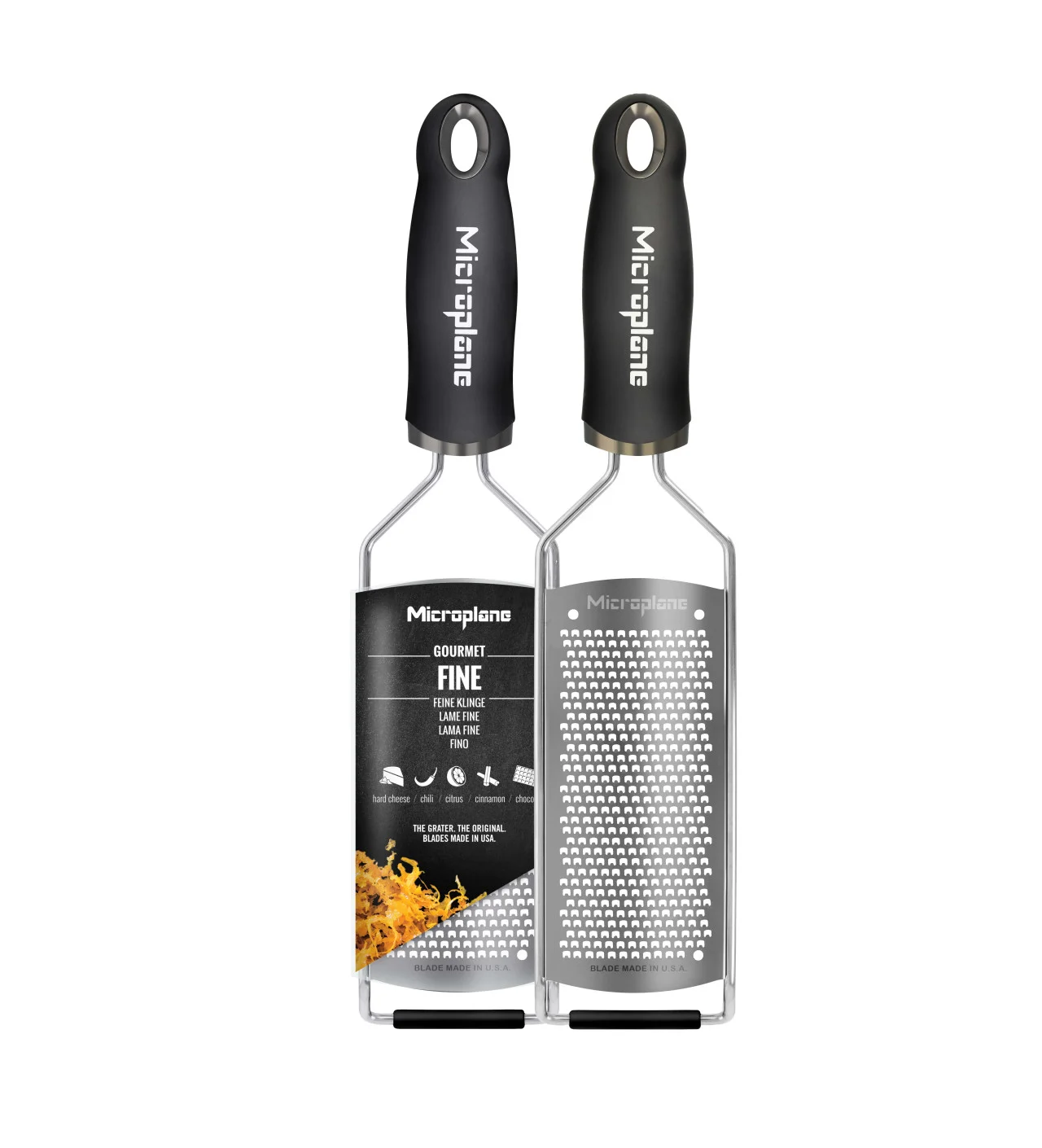 Imagina el aroma envolvente de la cascara de limón recién rallada, la textura suave de un queso fundiéndose en la boca, el crujir de delicadas virutas de chocolate negro... Si ya se te hace agua la boca, déjate conquistar por este rallador Microplane fino, el rallador multiuso capaz de ofrecerte estos tres placeres al mismo tiempo.