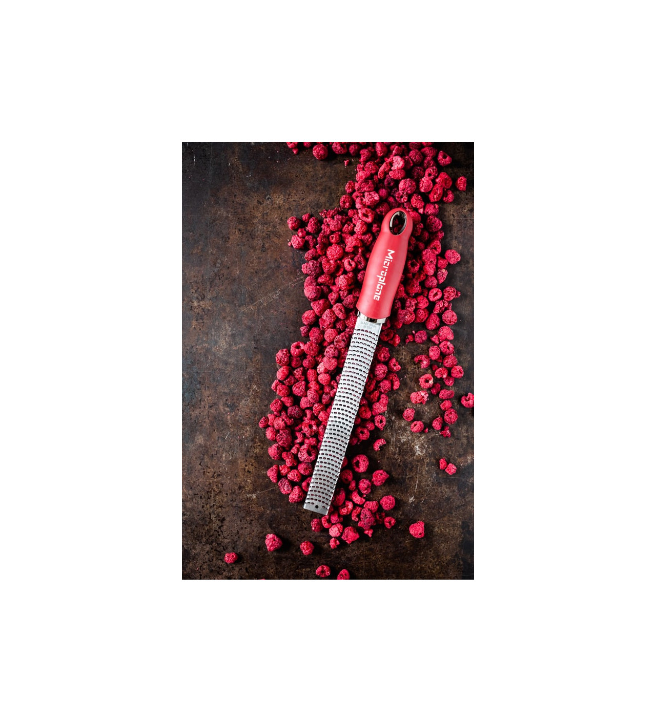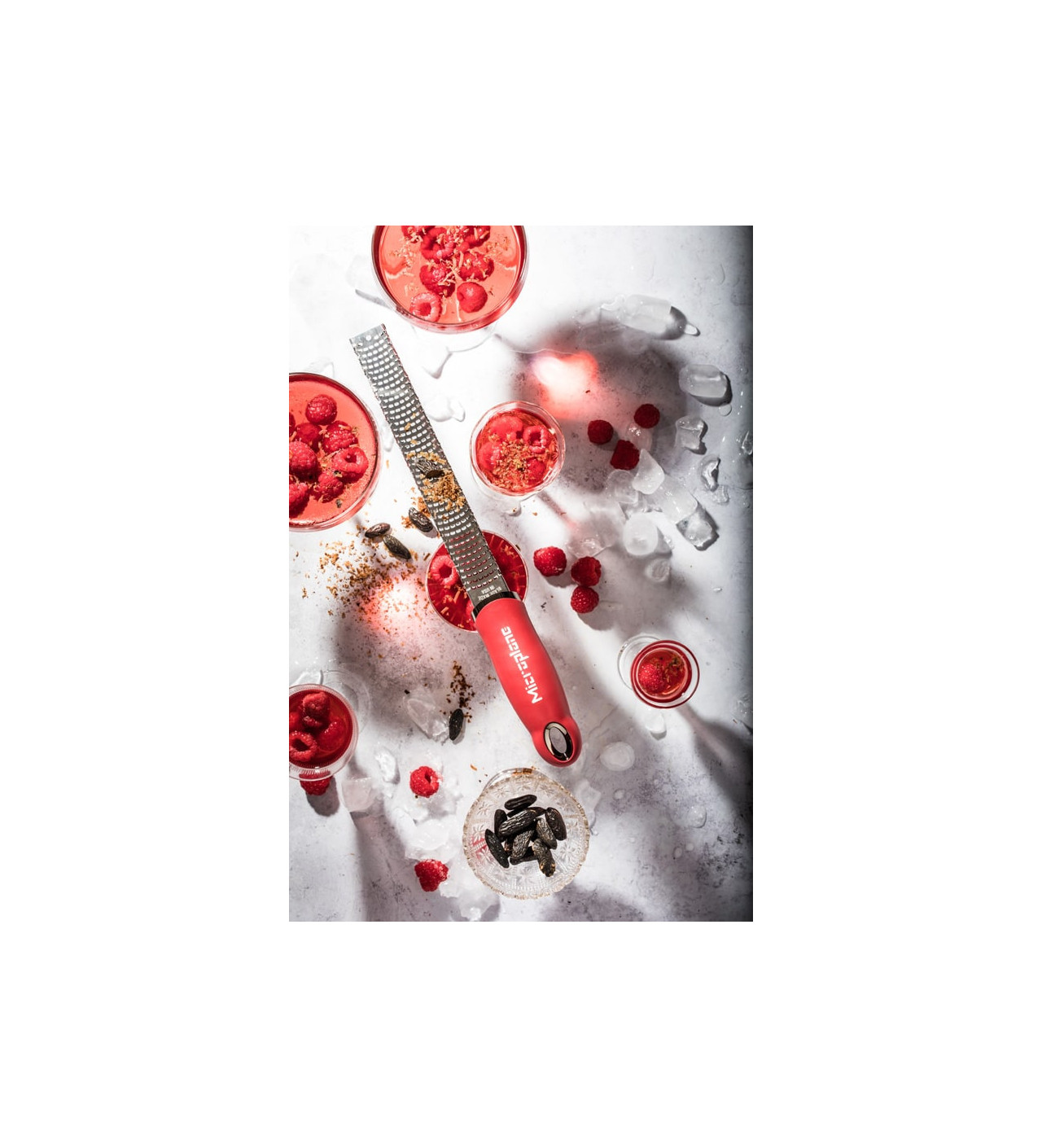 Con un mango de color rojo intenso, eterna encarnación de la pasión, el amor y el peligro, Microplane reinventa su emblemático rallador de cocina de la serie Premium Classic. Pensado para los amantes de la gastronomía, este zester es una invitación a experimentar nuevas formas de enriquecer tus preparaciones.