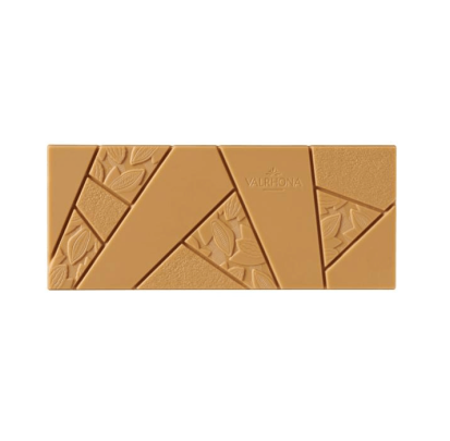 Corta una tira de rodoide y, con un tenedor, esparce el chocolate templado sobre la superficie haciendo movimientos de vaivén. Si lo deseas, puedes doblar el acetato para tartas para formar un tubo o una cinta. Para mantenerlo cerrado, usa una pinza para la ropa. Una vez que el chocolate se ha cristalizado, retira el rollo de acetato cuidadosamente.