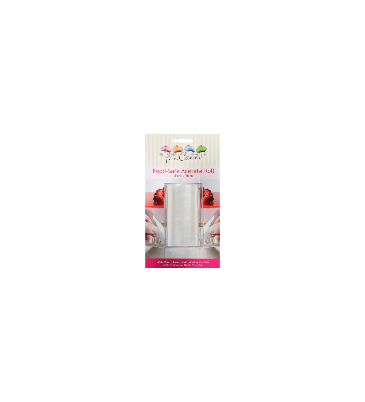 El acetato para tartas se ha usado durante mucho tiempo únicamente por los profesionales, sin embargo, es cada vez más popular entre los aficionados debido a la facilidad y a las diferentes posibilidades de uso. En forma de rollo de 20 m de largo y 8 cm de altura, es ideal para uso doméstico.