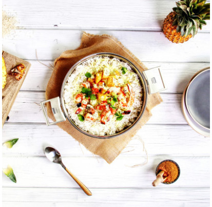 Además de ser compatible con todas las fuentes de calor, incluida inducción, podrás gratinar tus platos en el horno con esta sartén alta Mutine extraíble.