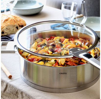 Prepara deliciosos platos a fuego lento con esta sartén alta 22 cm. La sartén alta 100% acero inoxidable es perfecta para cocinar a fuego lento, cocer o dorar carne y verduras sin grasa. Gracias a su fondo difusor, la sartén alta Cristel conservará el sabor distintivo de tus platos y los cocinará a la perfección. Cristel se preocupa por brindarte una mejor experiencia culinaria, por eso ha creado el diseño extraíble: un concepto de Cristel que hace posible empilar cazos, cacerolas y más fácilmente en un espacio reducido.