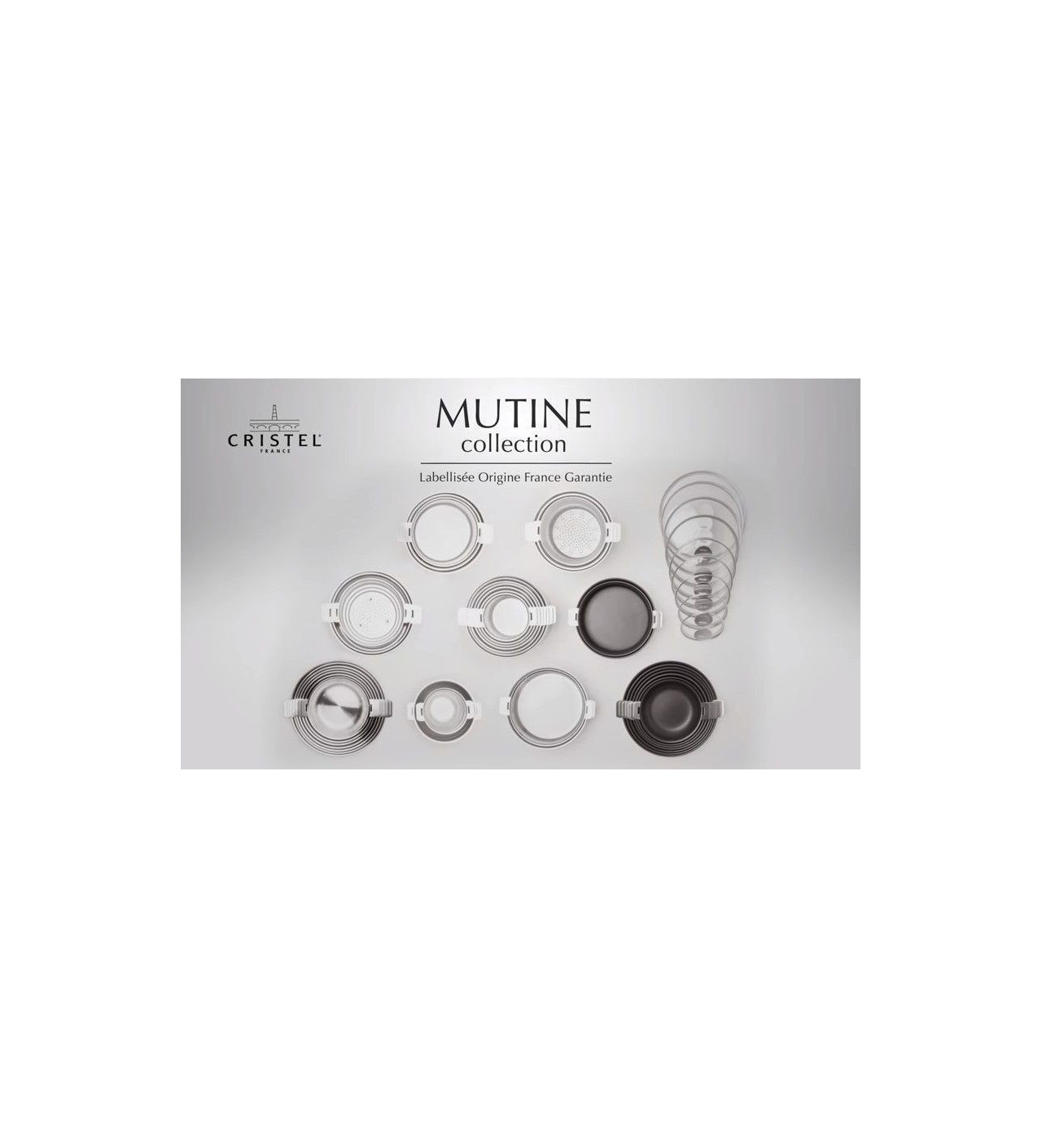La Colección Mutine: La marca Cristel ha creado la colección Mutine Extraíble (con mangos y asas desmontables) y Mutine fija. Esta gama tiene un diseño sencillo y elegante que combinará a la perfección con tu cocina. El material de cocina Mutine posee un cuerpo fabricado por completo en acero inoxidable 18/10 y un fondo difusor, que se unen para garantizar resultados de calidad superior en todas las fuentes de calor.