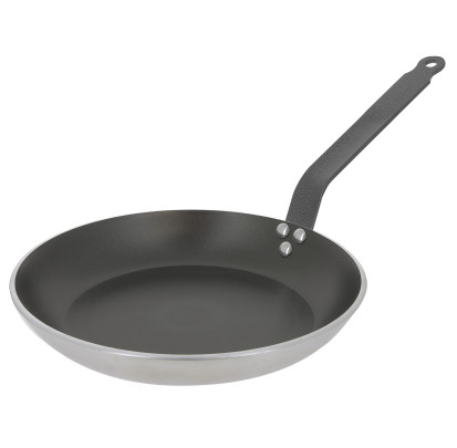 Elaborada por completo en aluminio, la sartén profesional Choc de Buyer tiene un fondo de acero inoxidable añadido compatible con todas las fuentes de calor, incluida placa de inducción. Gracias a su revestimiento de 5 capas, los alimentos no se pegan a la sartén 28 cm, ahora podrás cocinar sin necesidad de añadir mucho aceite. El mango remachado en forma de lámina de la sartén de Buyer también cuenta con un recubrimiento resistente a altas temperaturas Su diseño curvo estilo francés ofrece un agarre cómodo.