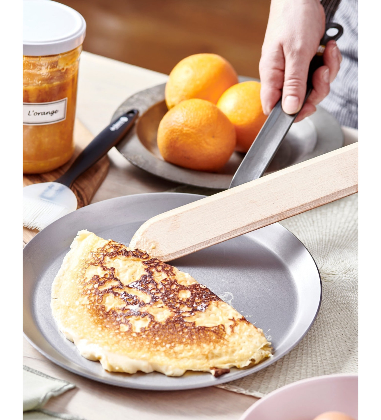Con las sartenes creperas de Hierro Mineral B prepararás deliciosas y crujientes crêpes que sorprenderán a todos tus invitados. El contorno de la sartén para crepes es práctico y su diseño es ideal para voltear crêpes.