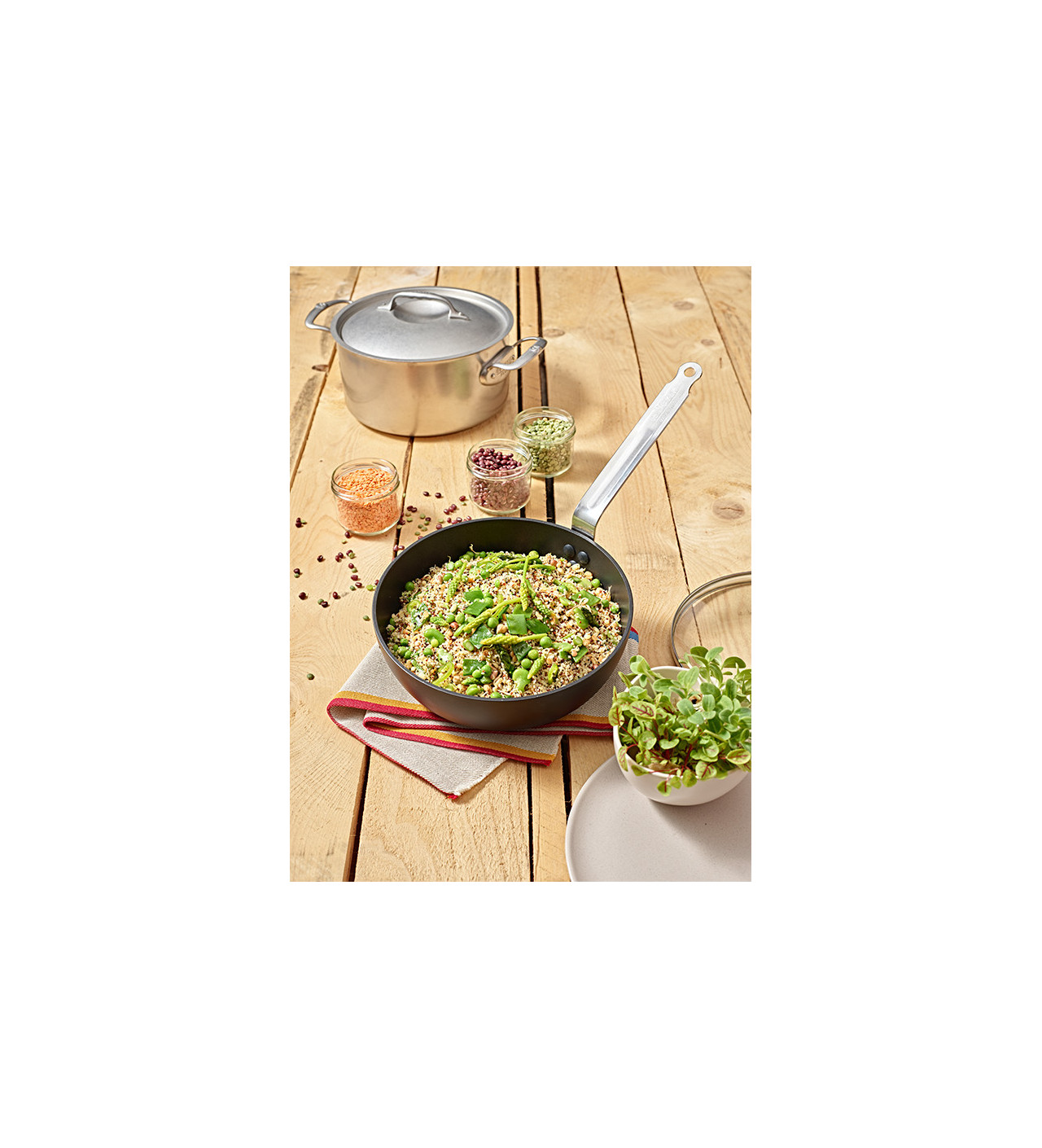 Utiliza la sartén honda inducción para saltear pescado y verduras o recalentar tus platos sin alterar su sabor. Además de ser indeformable, esta sartén honda posee un mango remachado de acero inoxidable con diseño curvo estilo francés que ofrece un agarre cómodo y es resistente al calor. Así tendrás mayor seguridad al cocinar.