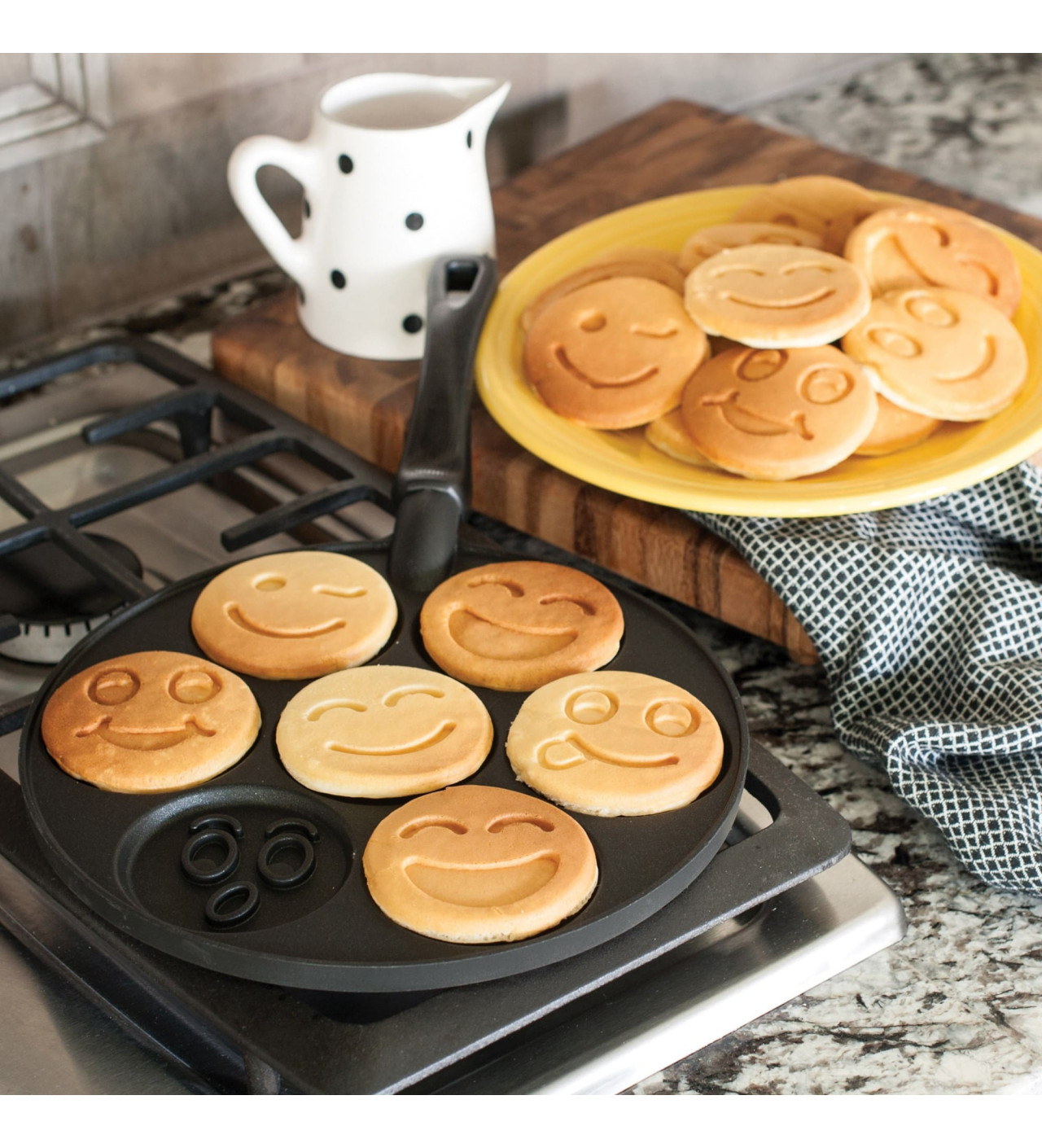 Hecha de aluminio fundido con siete emojis únicos, la sartén tortitas Nordic Ware resalta por su resistente material. Utilízala tan seguido como quieras, cada tortita, panqueque o crepa que prepares saldrá fácilmente gracias al revestimiento antiadherente
