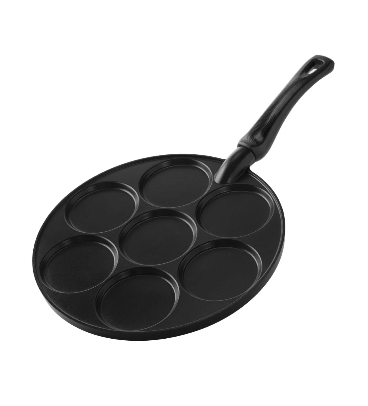 Con esta sartén de aluminio fundido puedes hacer siete panqueques o crepas a la vez para saciar el apetito de tus familiares. Esta resistente sartén tortitas cuenta con un revestimiento antiadherente de alta calidad. Su mango ergonómico te ayudará a sostenerla de manera firme mientras cocinas.