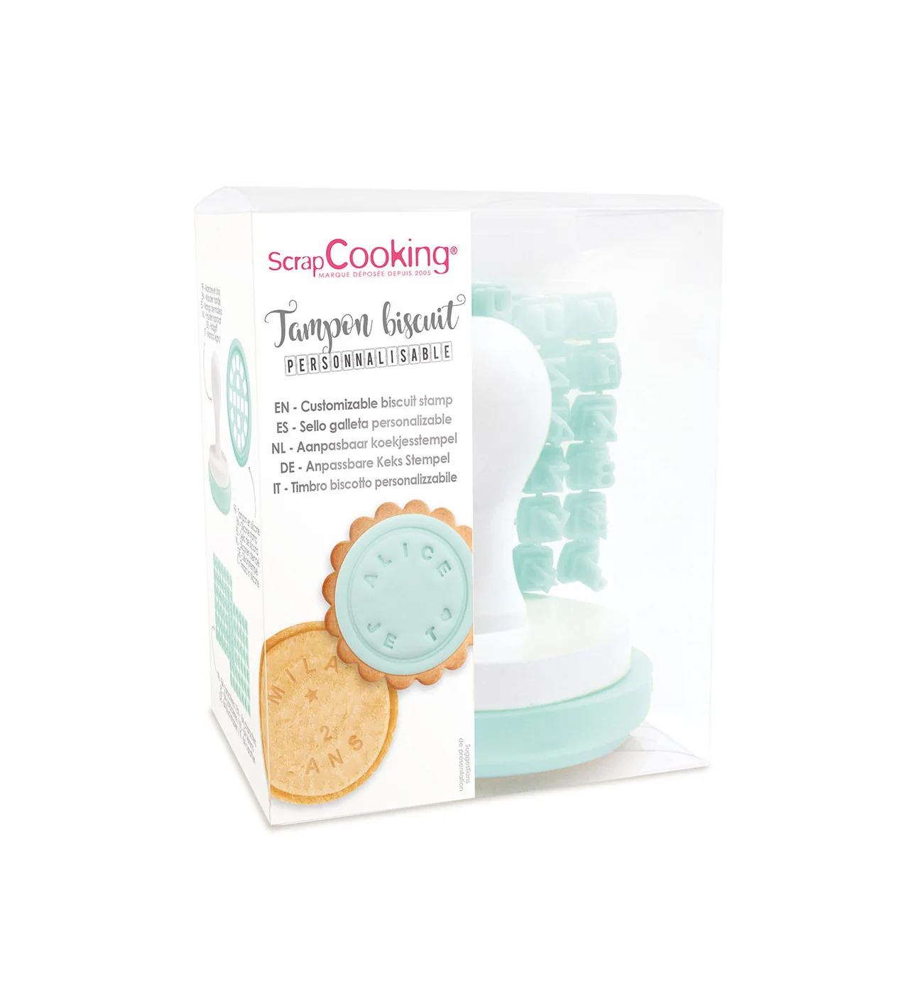 Personaliza todas tus galletas fácilmente con el sello para galletas personalizado de la marca Scrapcooking. Viene con 84 letras, números y símbolos: podrás declarar tu amor, desear un feliz cumpleaños o incluso darle gusto a tu madre por el día de las madres con estas galletas únicas.