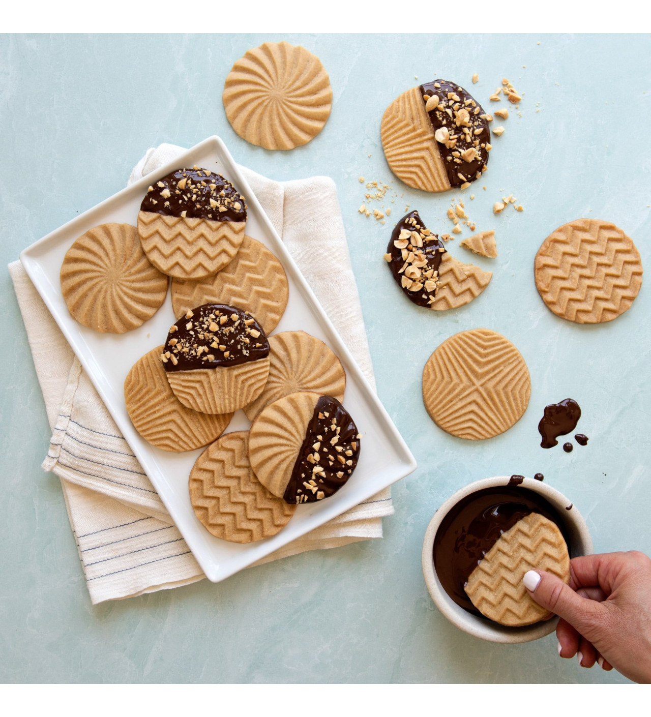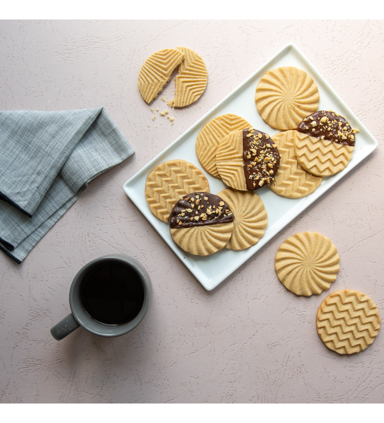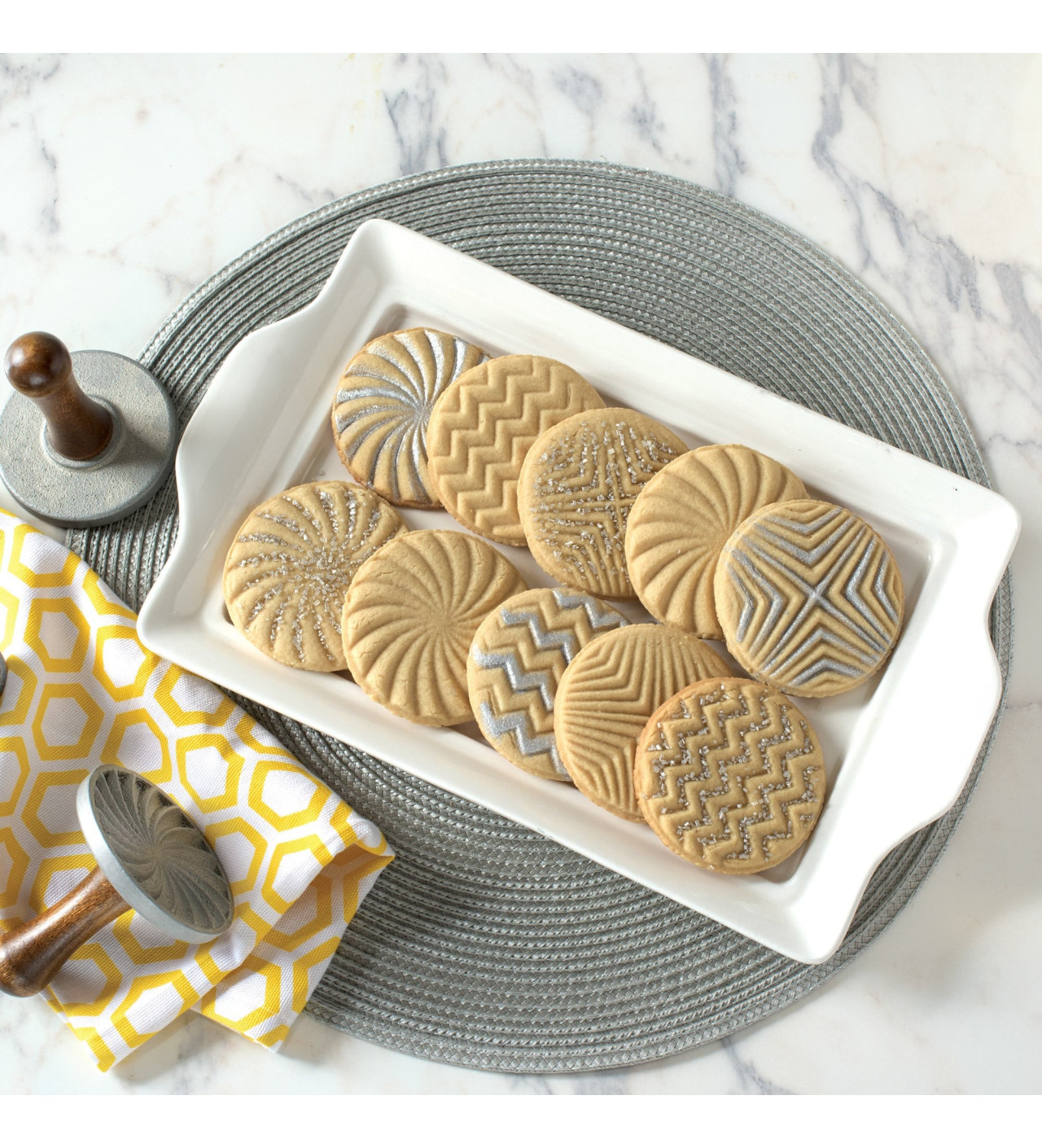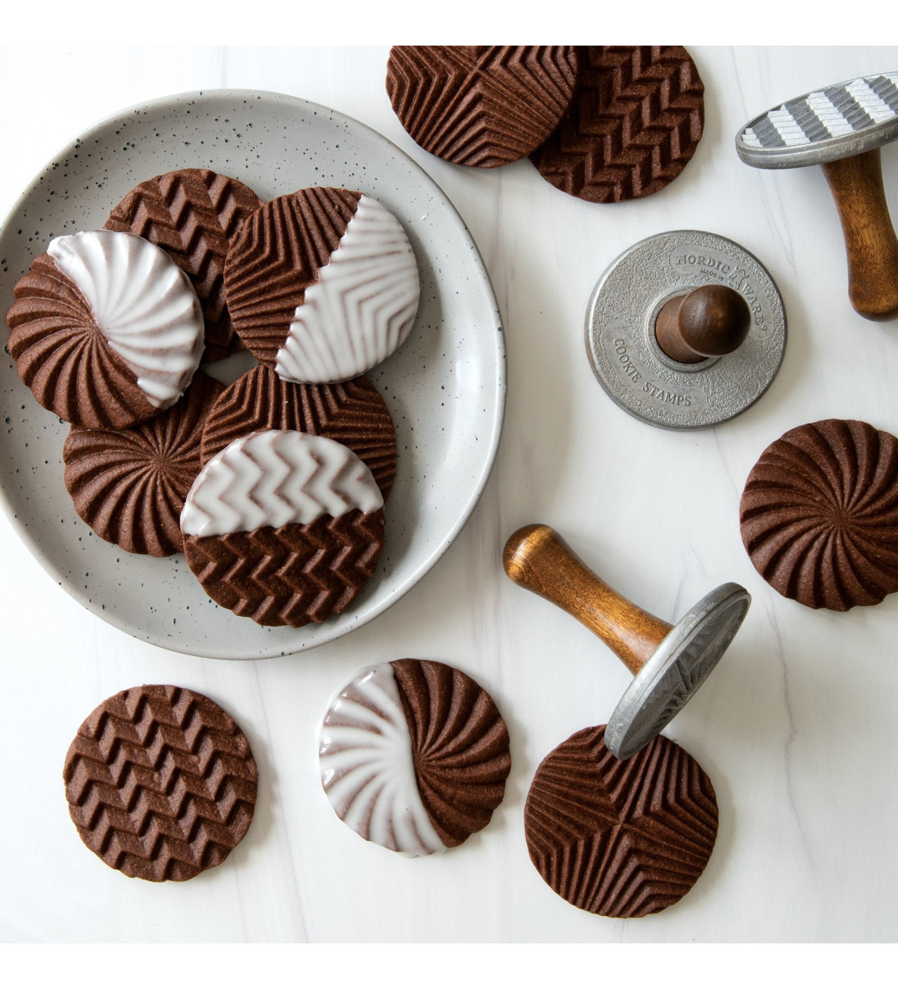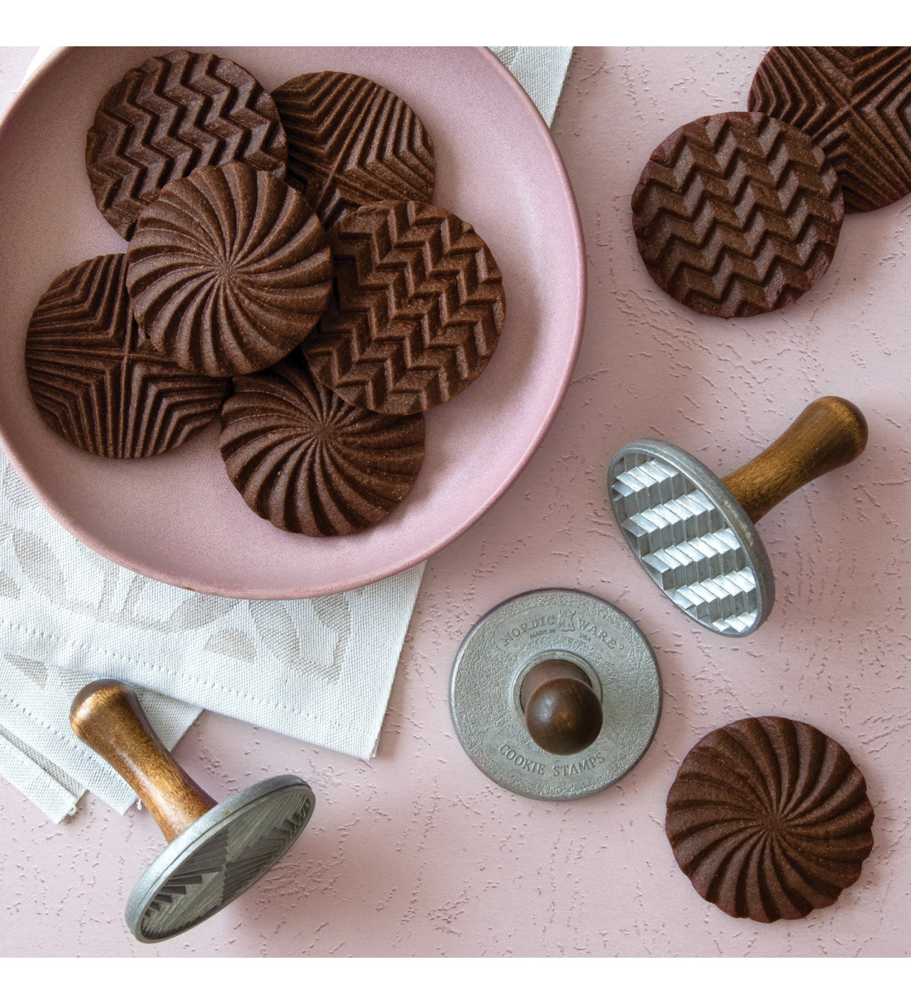 Plasma diseños originales en tus galletas y haz que tengan un delicioso y elegante estilo con los sellos para galletas Nordic Ware.