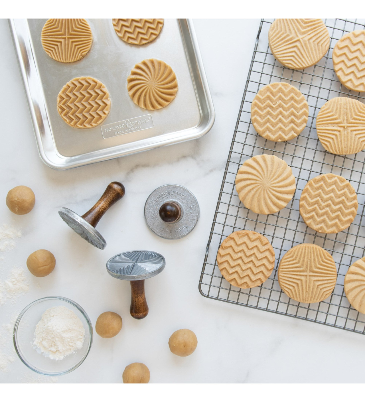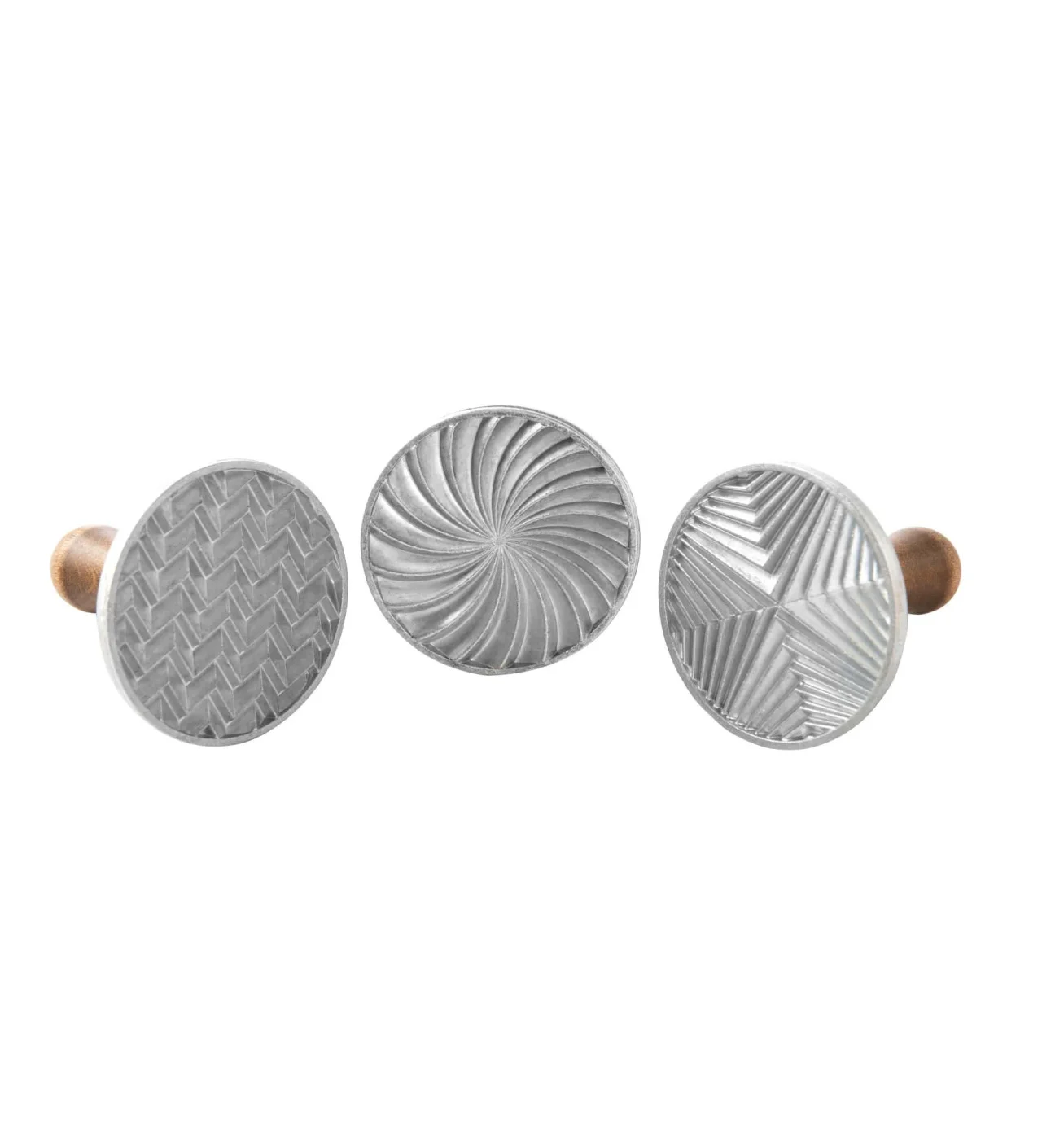 Los sellos geo Nordic Ware, hechos de aluminio con un mango cómodo de madera, son excelentes para cualquier ocasión. Estos sellos redondos son resistentes y duraderos, por lo que podrás aprovecharlos para decorar galletas cada vez más deliciosas.