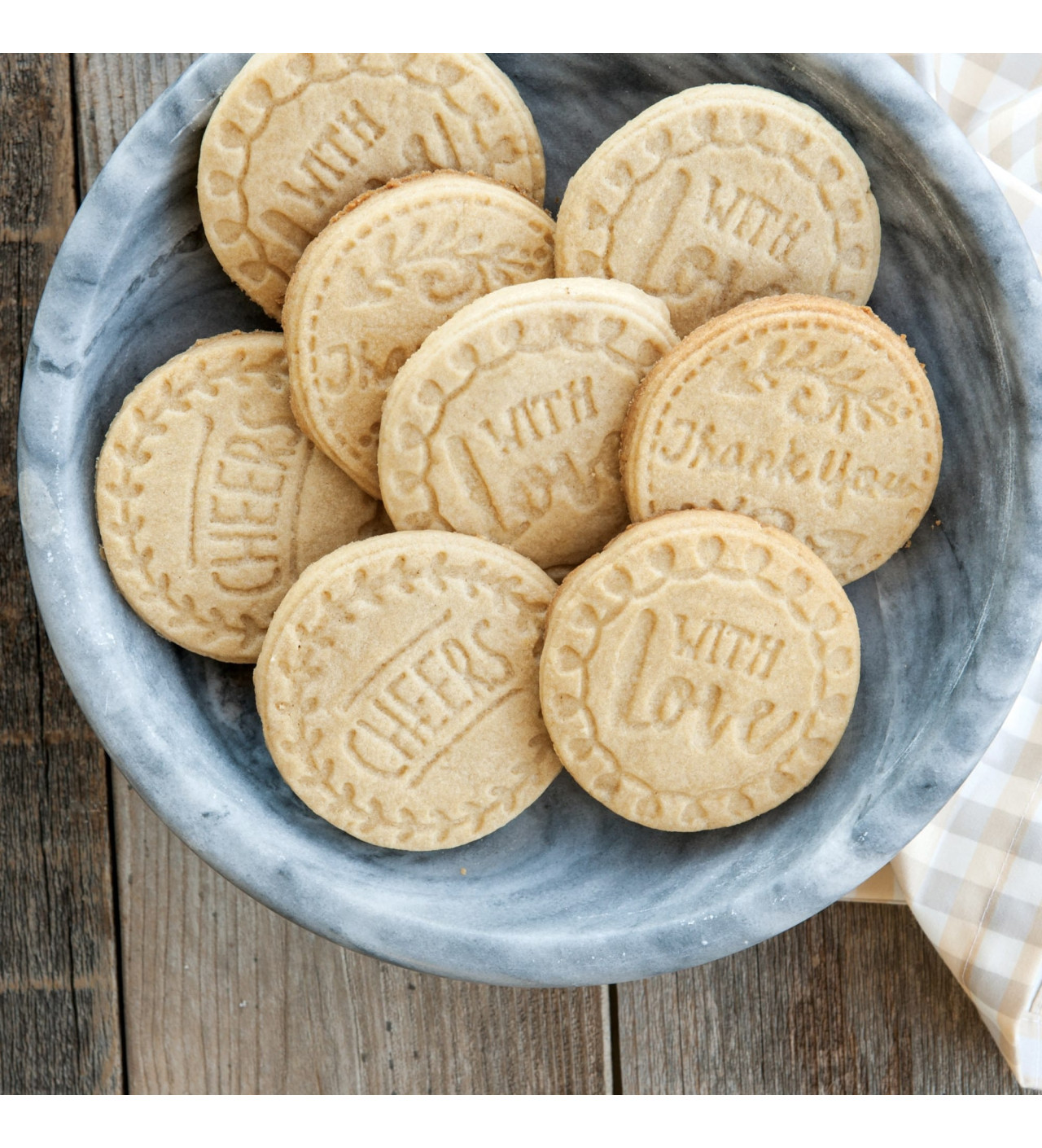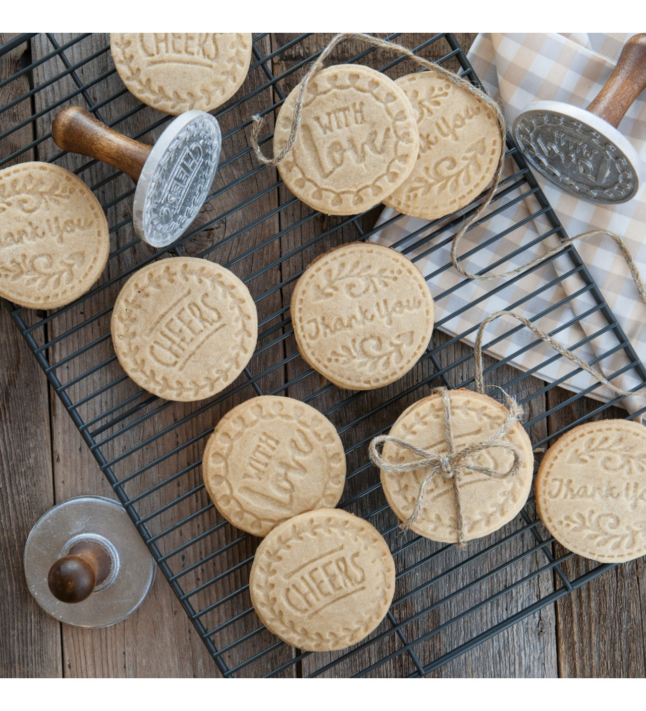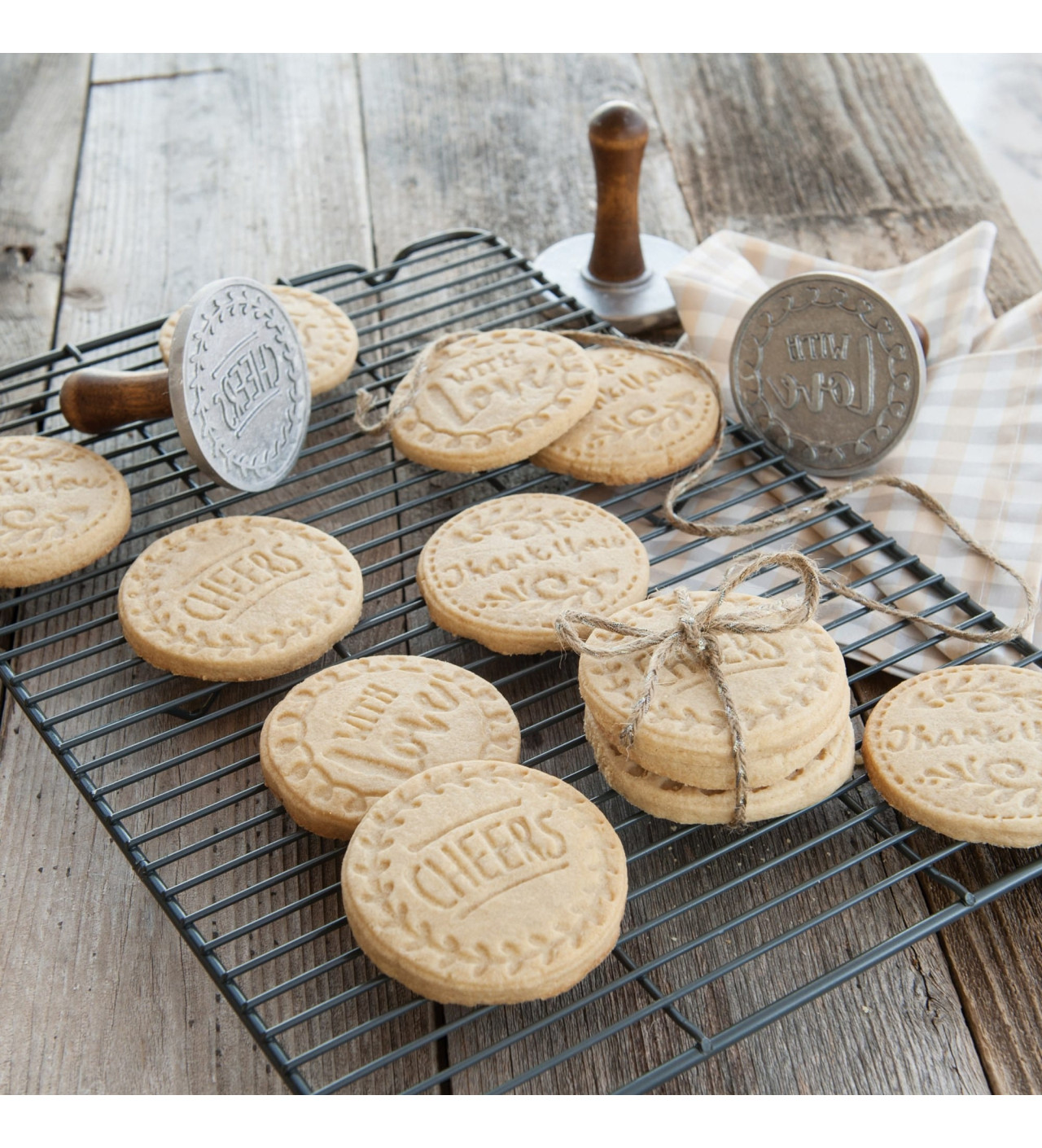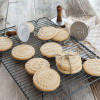 Utiliza estos sellos para galletas redondos greetings de Nordic Ware para hacer sabrosos postres con cálidas palabras. Son muy fáciles de usar; niños y adultos se divertirán a la hora de la merienda con estos sellos para galletas.