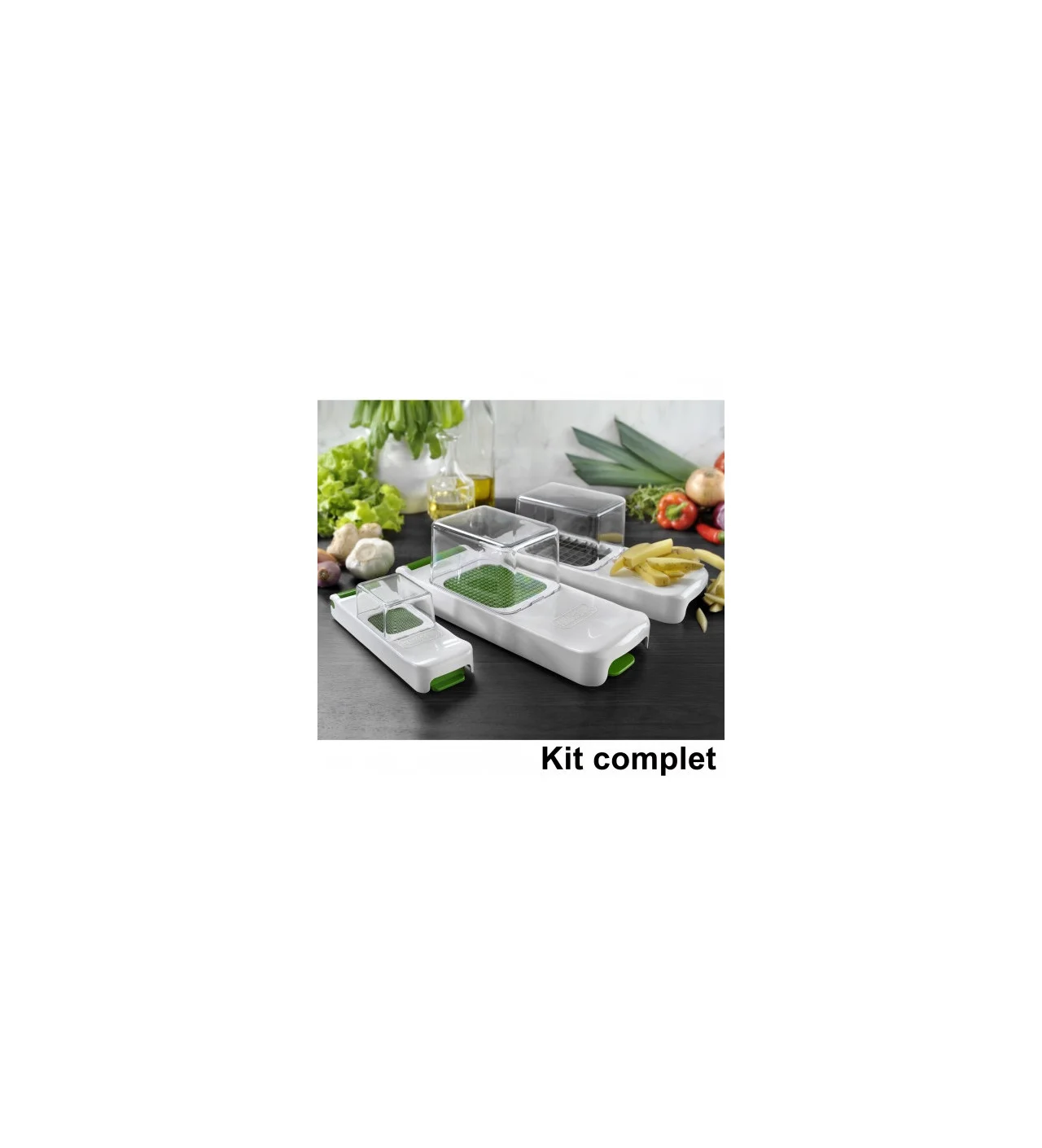 El cortador de verduras Alligator está diseñado para ahorrarte tiempo en la cocina. Con este kit completo de cortador de fruta y verdura, picador de cebolla y cortador de patata, corta en segundos y con total seguridad bastones o dados de zanahoria, patata, cebolla e incluso kiwi, simplemente bajando la tapa con un gesto firme.