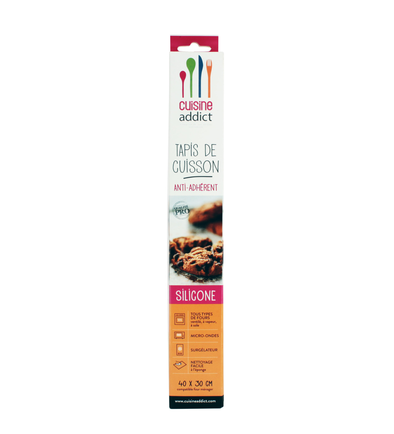 El tapete de silicona Cusineaddict es la herramienta culinaria de los profesionales, su formato de 40 x 30 cm es ideal para hornos de uso doméstico y profesional. Soporta desde -40 °C hasta +250 °C, este tapete de silicona para hornear profesional es compatible con todos los tipos de horno (convección, modular, vapor), microondas y ultracongelador.
