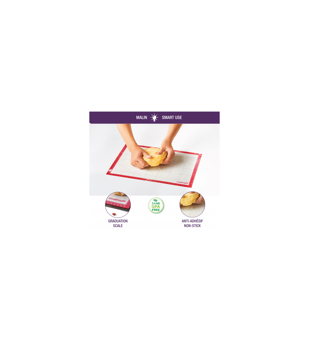 El tapete silicona horno es el implemento culinario que cualquier chef, principiante o profesional, debe tener en su cocina. Este tapete de silicona no pasa de moda, es el momento de reemplazar el papel de horno tradicional y descubrir una nueva manera de hornear masa, macarrones franceses o bizcochos. El tapete de silicona para hornear de Mastrad tiene múltiples usos, puedes usarlo para modelar azúcar o crocantes de almendras. Además, la lámina de silicona para horno sirve para estirar o amasar la mezcla de tus recetas, ya sean dulces o saladas. Este tapete silicona horno cuenta con medidas y cuadrículas que te servirán de guía para cortar la masa. Así podrás formar triángulos con precisión para cocinar croissants suaves y deliciosos.