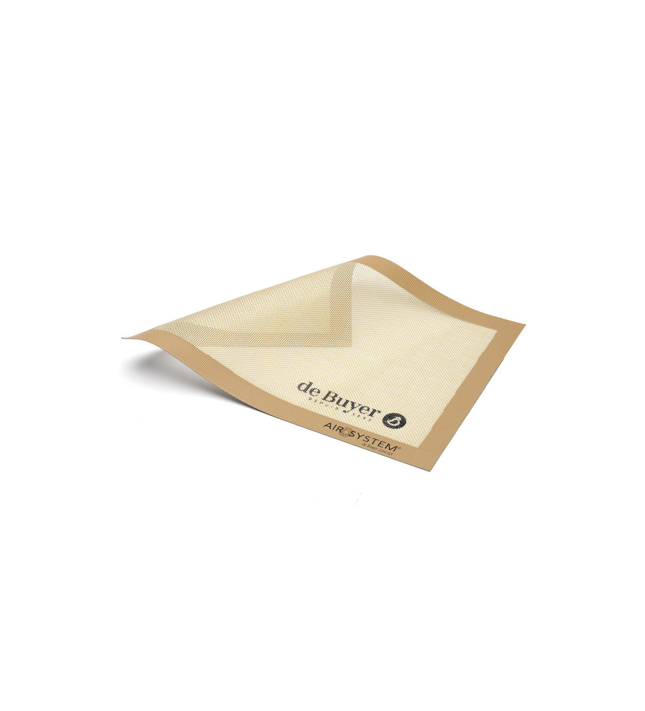 El tapete perforado de silicona de Buyer garantiza cocciones homogéneas en todas tus recetas. Para explotar el potencial de tu tapete de silicona y fibra de vidrio, utilízalo con una bandeja perforada, así conseguirás mejores resultados. También puedes usar el tapete microperforado para cocinar masa congelada.