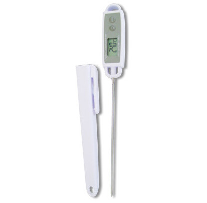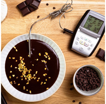 El termómetro con sonda sirve tanto para cocinar como para hacer repostería. Se caracteriza por incluir una sonda de 125 mm de largo y 3,5 mm de diámetro. Esta sonda puede medir la temperatura del chocolate atemperado o del almíbar. La punta de la sonda del termómetro de cocina es puntiaguda, lo que permite pinchar la carne y medir la temperatura interna sin dañarla, asegurando una cocción perfecta.