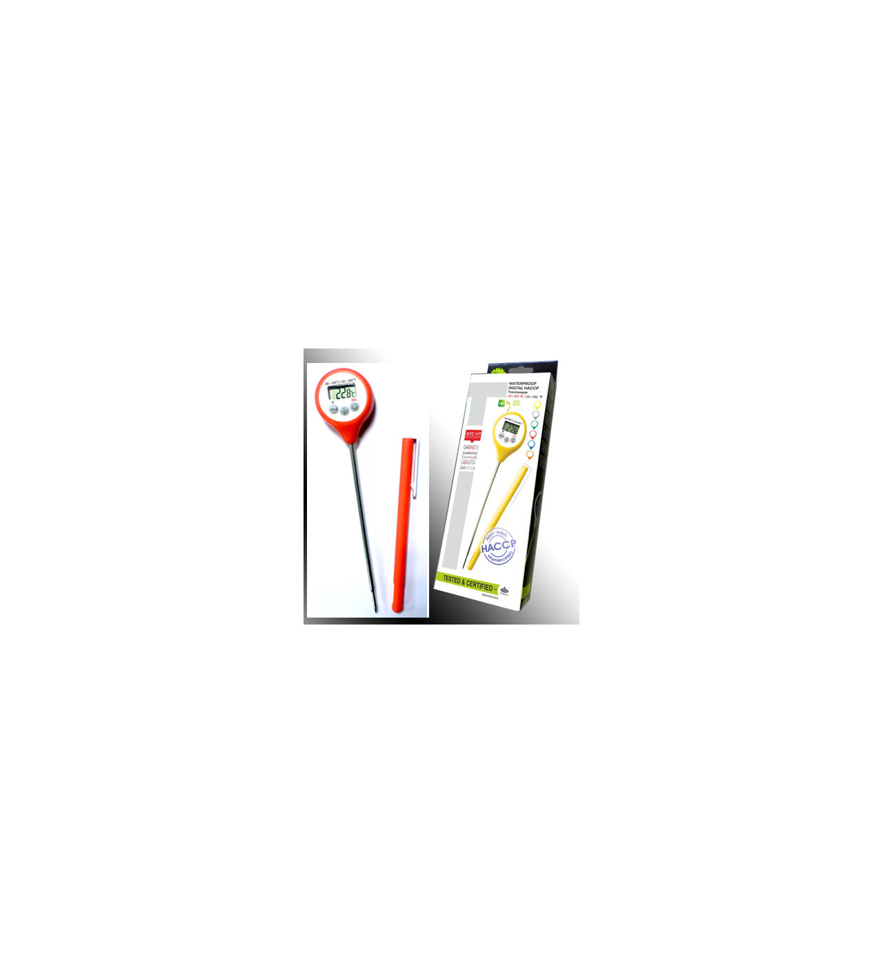 Gracias al termómetro de cocina, ¡es imposible fallar en cualquier receta! Basta con colocarlo en el centro de la carne, el pescado o la masa. El termómetro de cocina digital cumple con las últimas normas HACCP (APPCC) para profesionales, ya que muestra la temperatura en unos segundos con una precisión de 0,5°C. Gracias al código de color rojo, los profesionales podrán identificarlo fácilmente como un utensilio para la carne cruda.