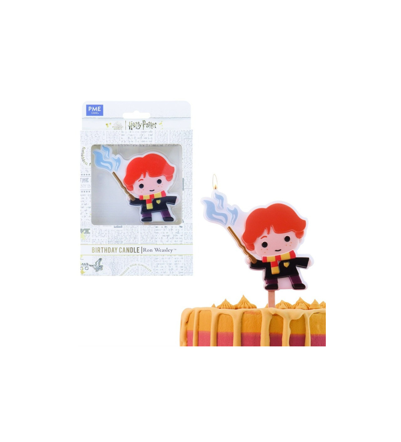 Sumérgete en el universo de Hogwarts y añade un toque de travesura a tu tarta con la vela para cumpleaños Ron Weasley.